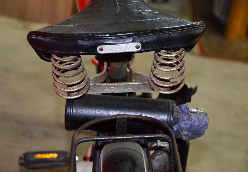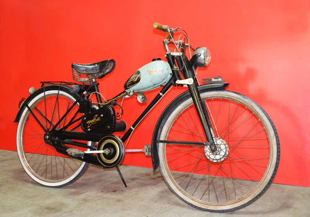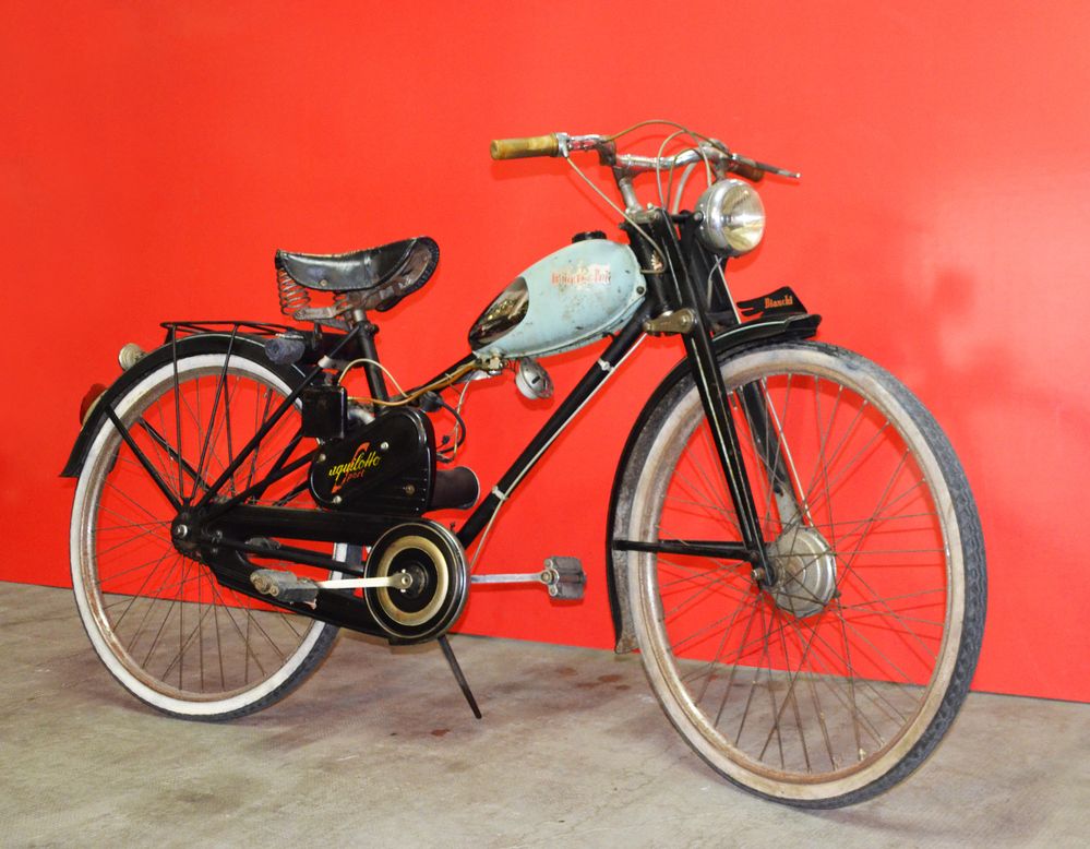 Tra i nuovi prodotti c’è il velomotore Aquilotto, che si pone a metà strada tra il motore ausiliario ed il ciclomotore, con un telaio da bicicletta su cui viene montato direttamente in fabbrica un micromotore da 45cc.