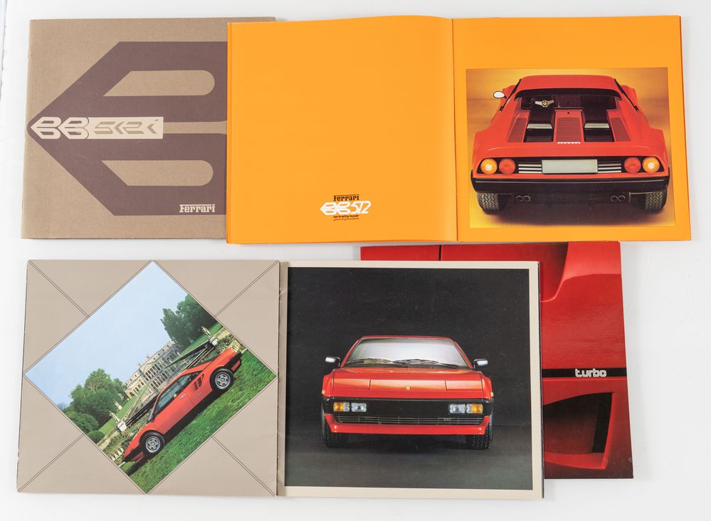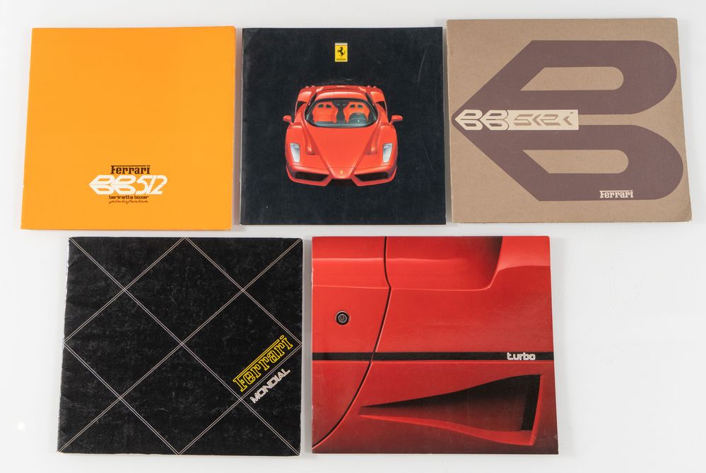 N.5 depliants originali Ferrari 512BB a carburatori e ad inizione, Mondial,208 Turbo ed Enzo.