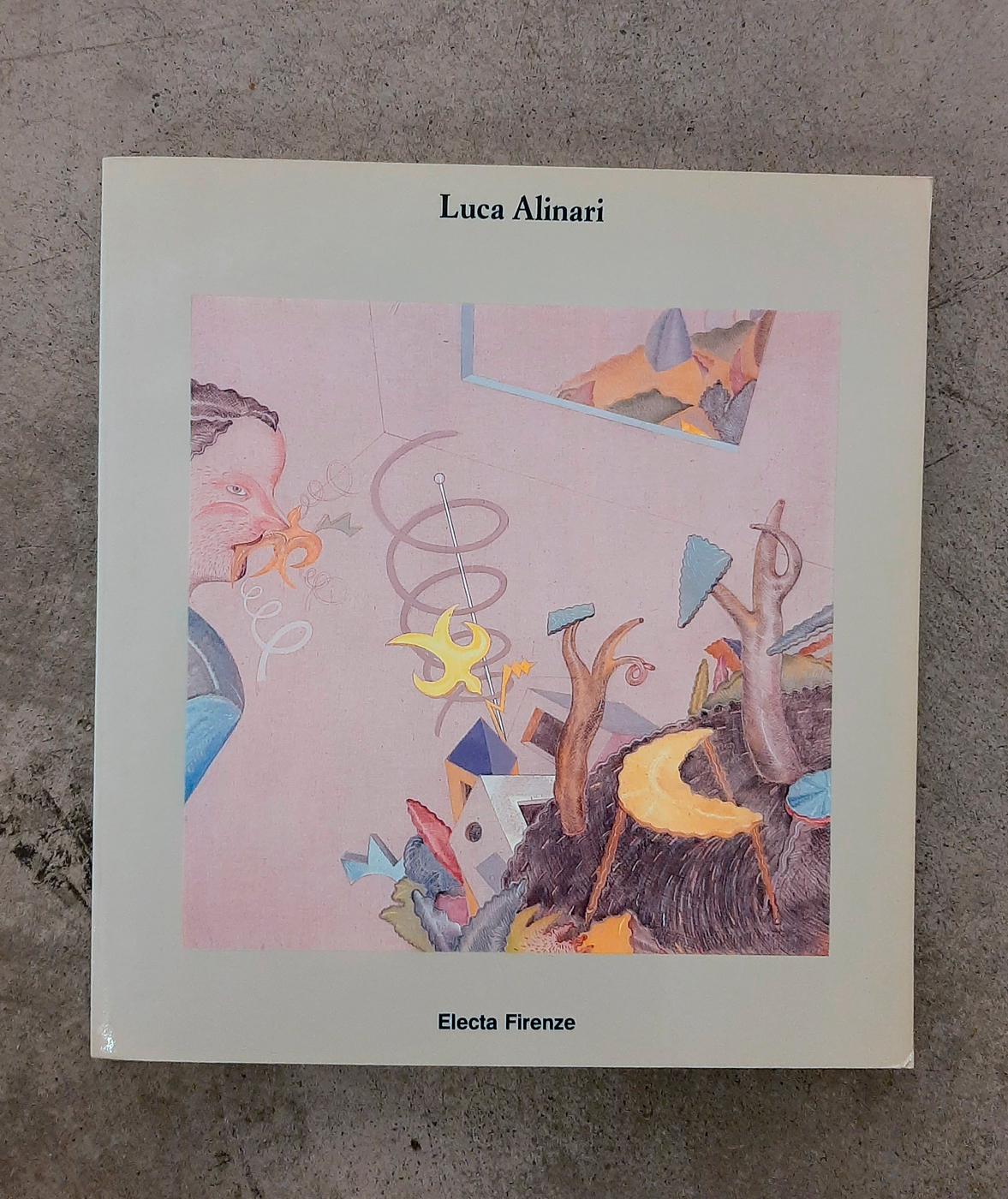 Catalogo della mostra monografica su Luca Alinari, tenutasi a Siena, Palazzo Pubblico Magazzini del Sale, aprile-giugno 1984, a cura di Renato Barilli. Brossura, pagine 66. Volume di pregio impreziosito da disegno e autografo dell'artista.