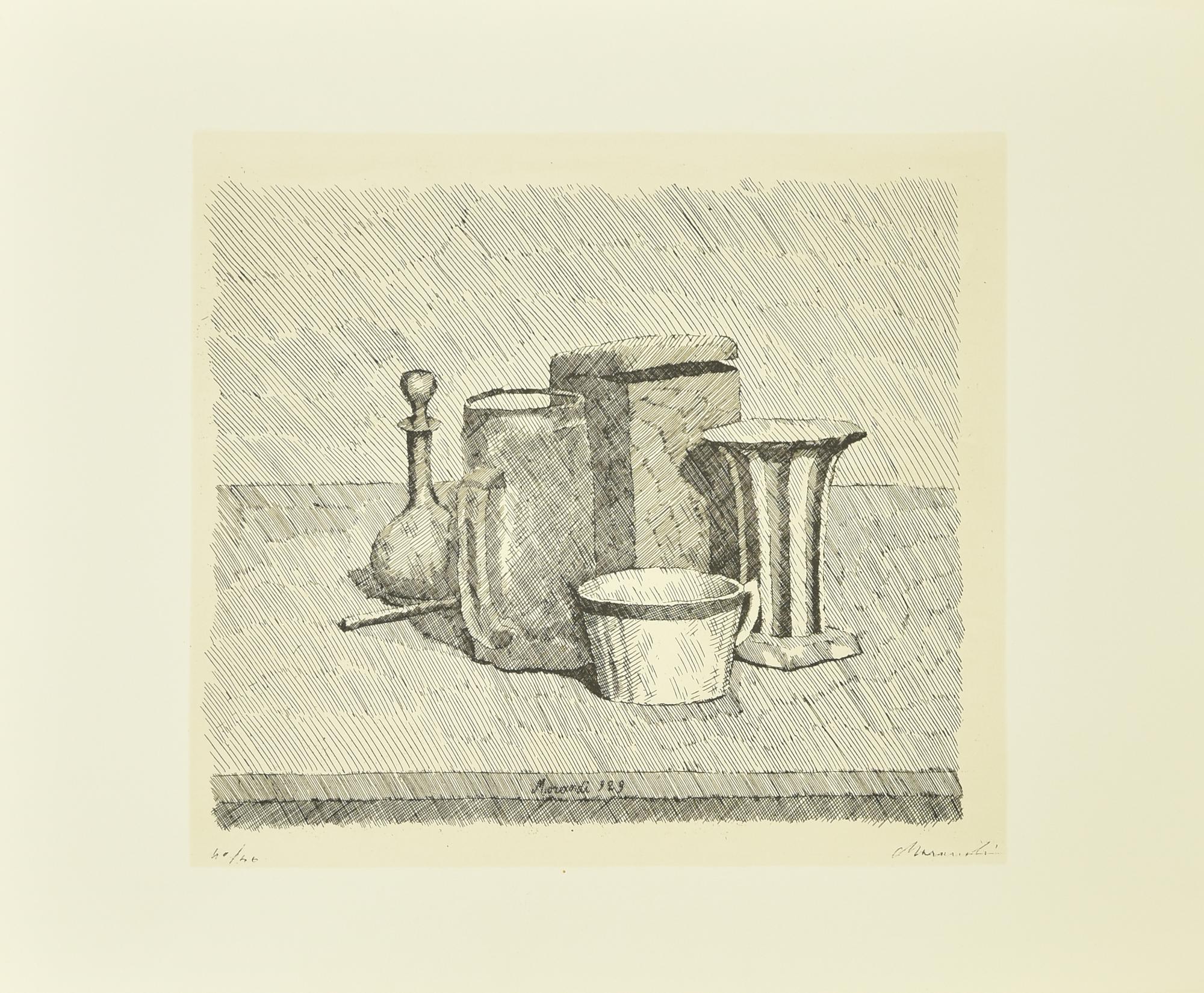 Giorgio Morandi NATURA MORTA CON TAZZINA E CARAFFA riproduzione...