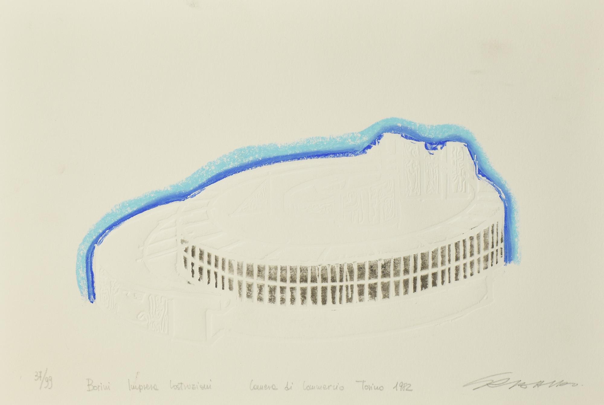 Ezio Gribaudo CAMERA DI COMMERCIO TORINO calcografia su carta, colorata a...