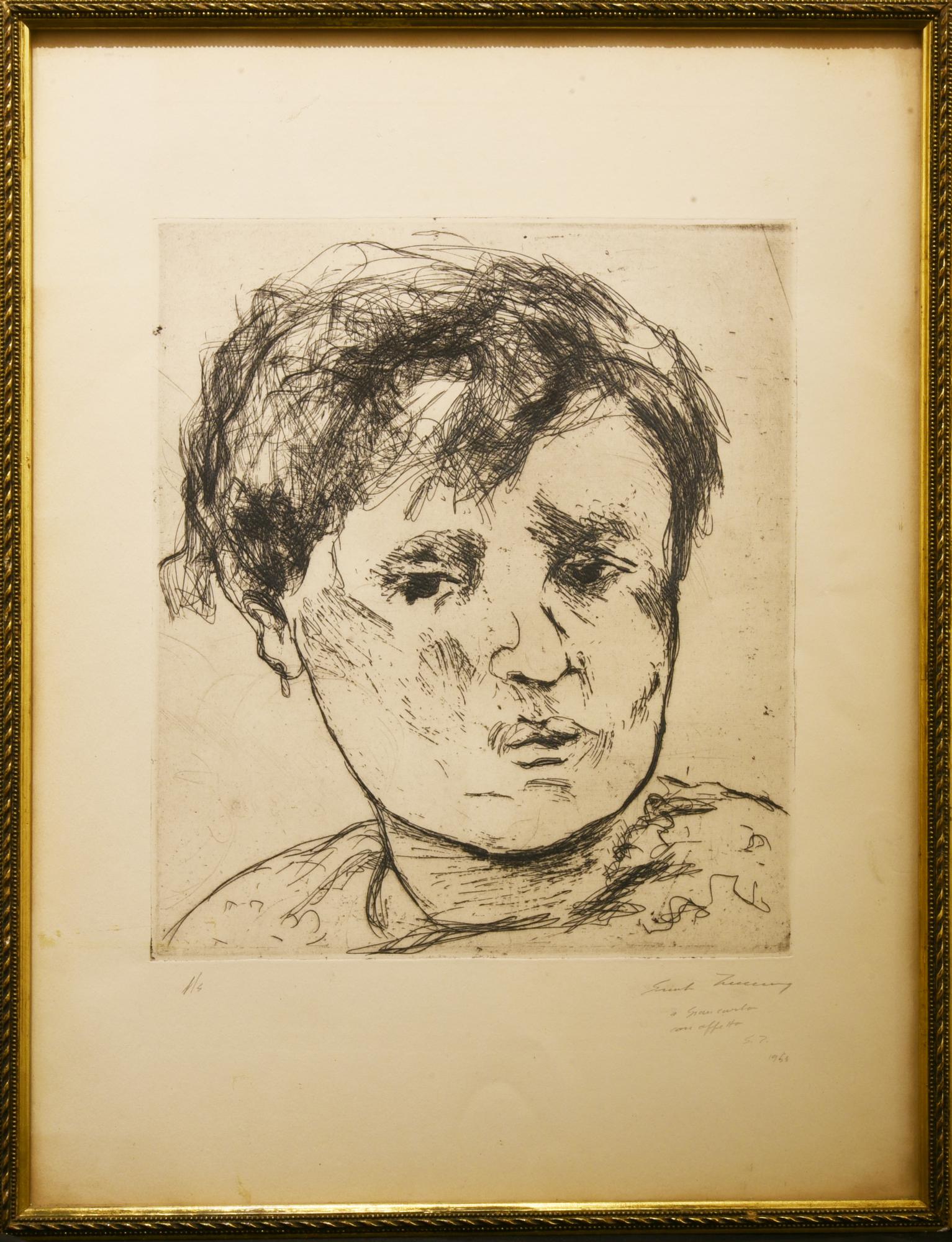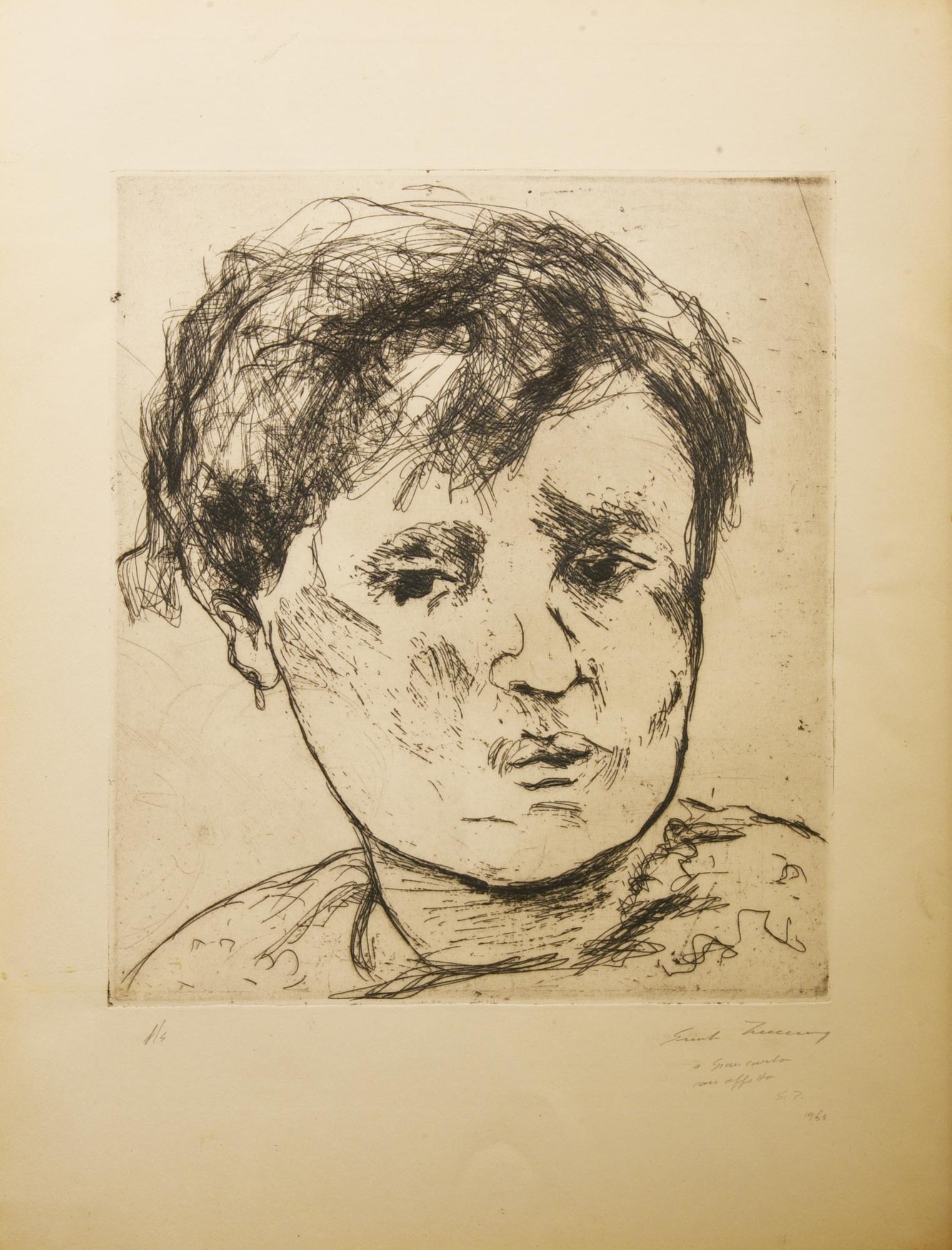 Ernesto Treccani VOLTO MASCHILE puntasecca, cm 29,5x24; su foglio cm 47x34;...