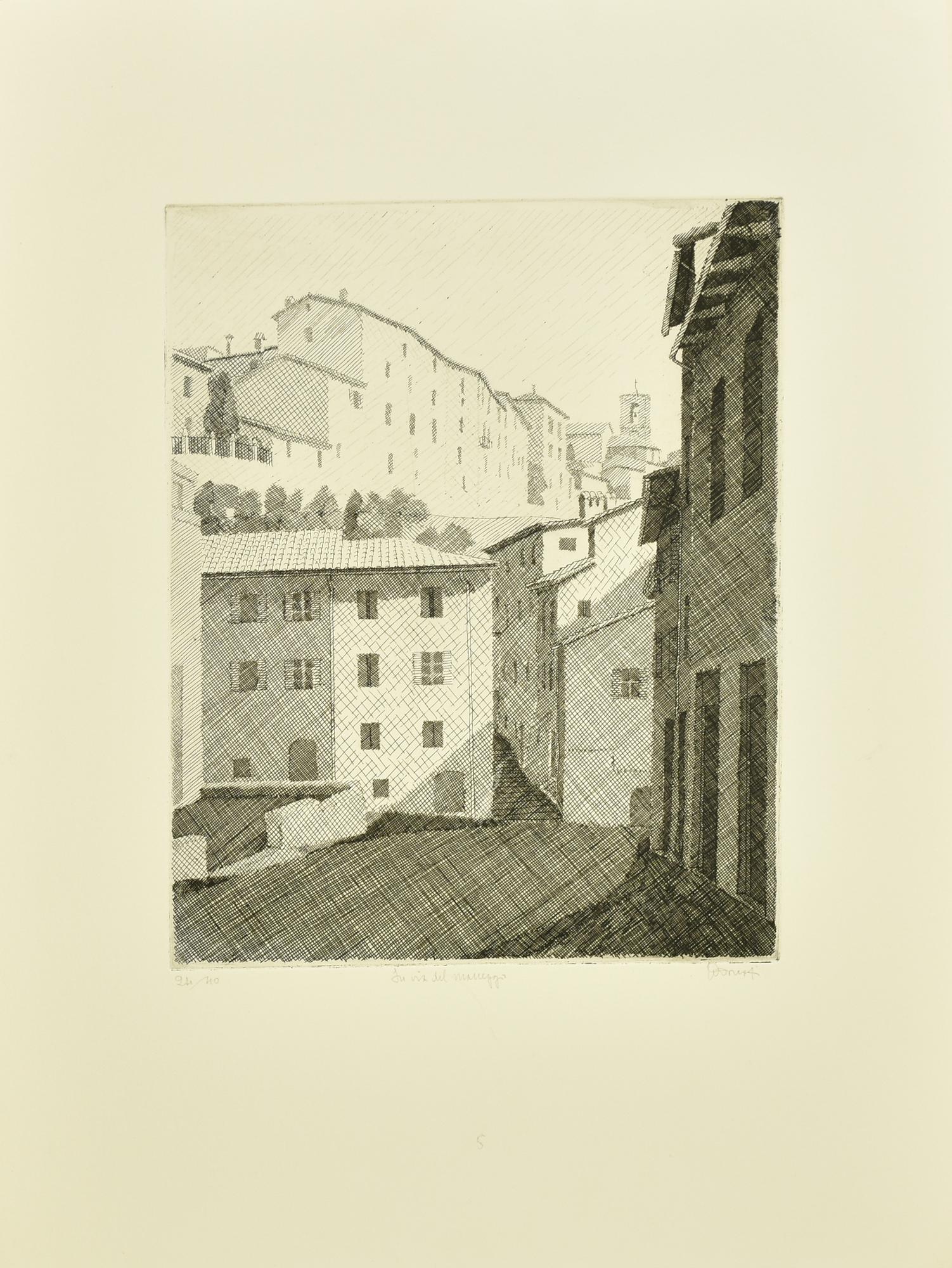 Diego Donati IN VIA DEL MANEGGIO acquaforte su carta, battuta cm 29x22, su...