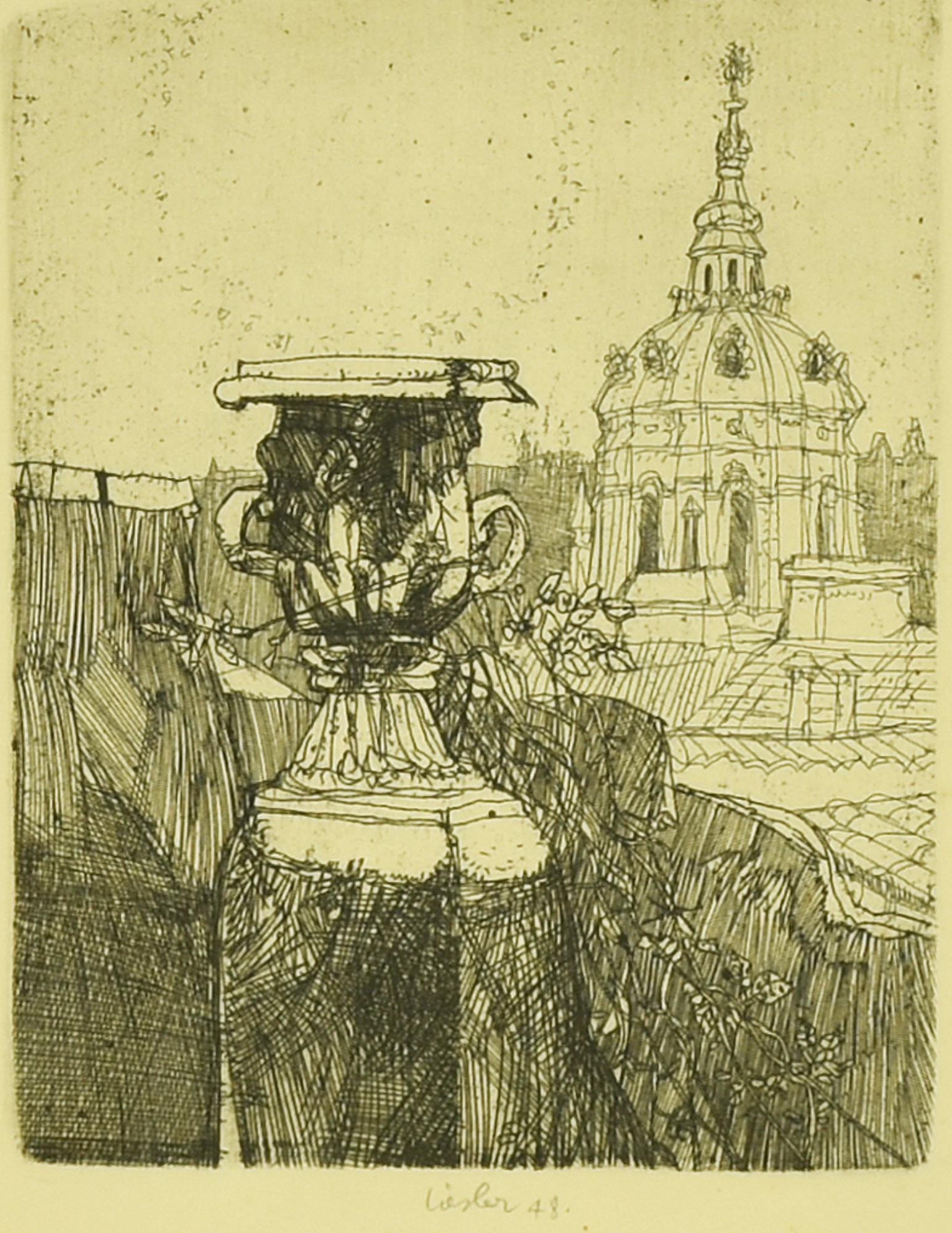 Josef Liesler VEDUTA ROMANA incisione su carta, battuta cm 15x11,5, su foglio...