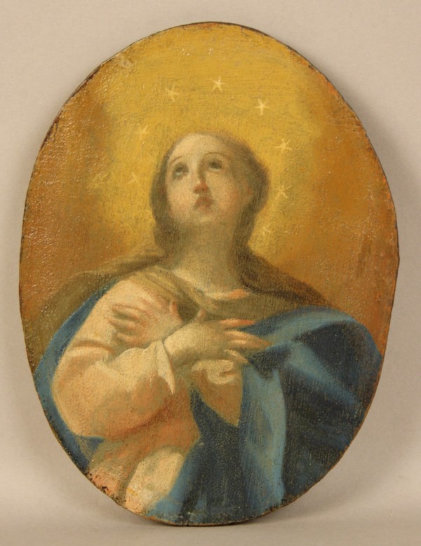 Piccolo dipinto ovale su tavola raff. ''MADONNA''. XVII secolo. Mis. Lung....