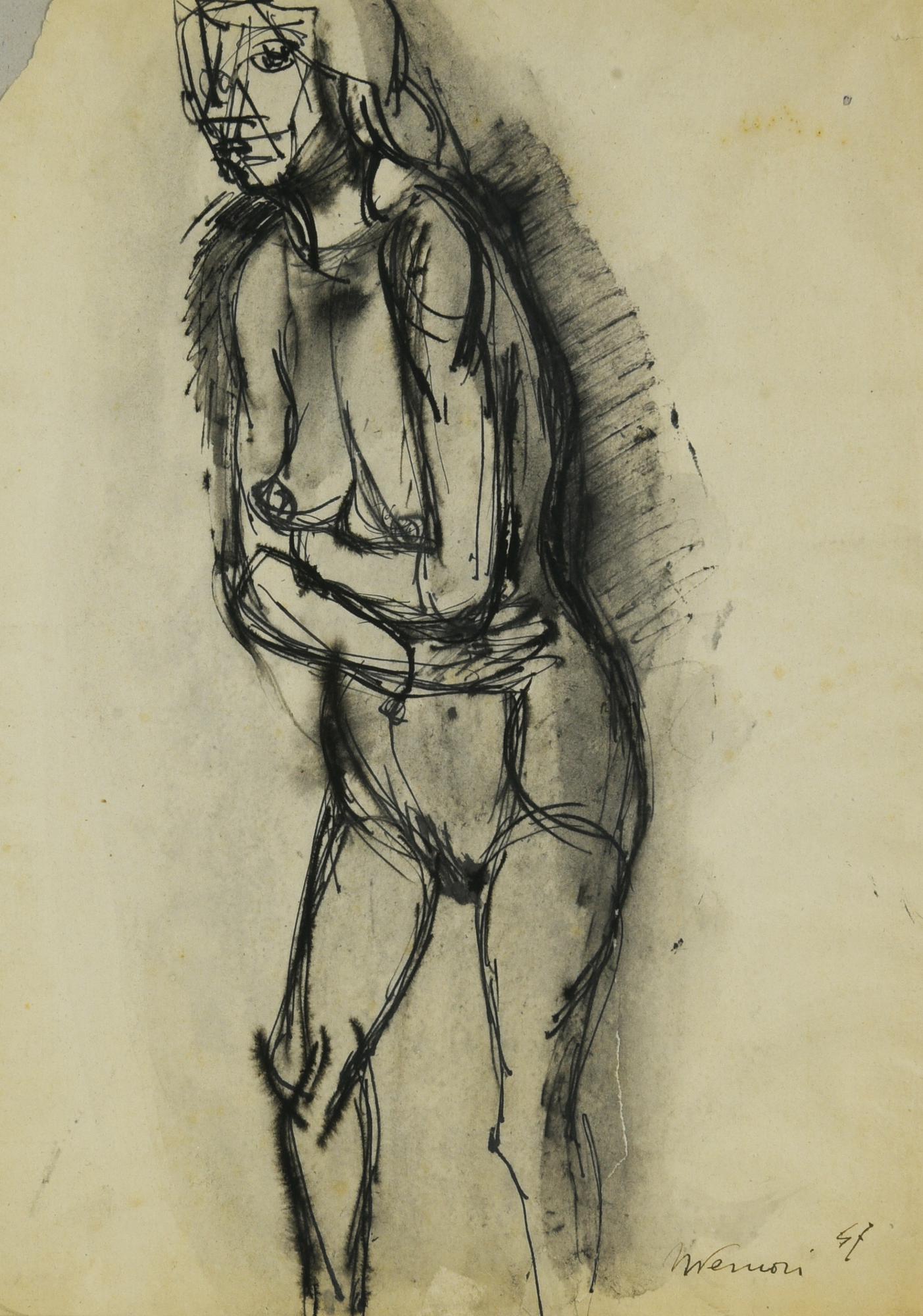 Vittorio Tavernari NUDO FEMMINILE matita e china su carta, cm 49x35 firma e...