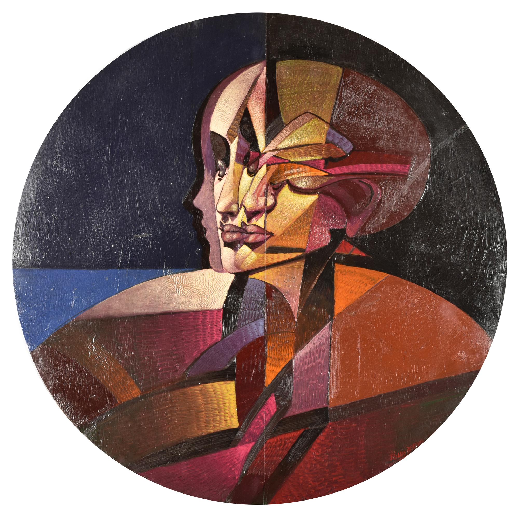 Tiziano Bertacco VOLTO olio su legno, diam 61 cm firma sul retro: firma,...