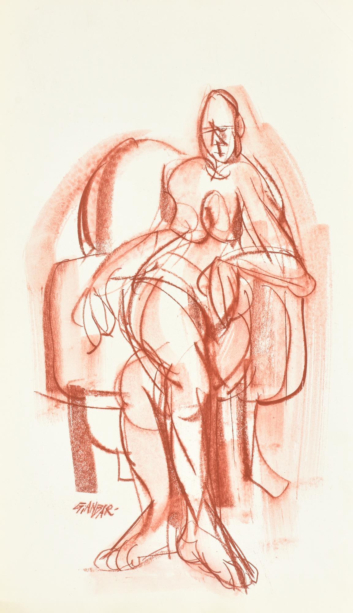 GIANBAR (Gianni Baretta) NUDO IN POLTRONA tecnica mista su cartoncino, cm...