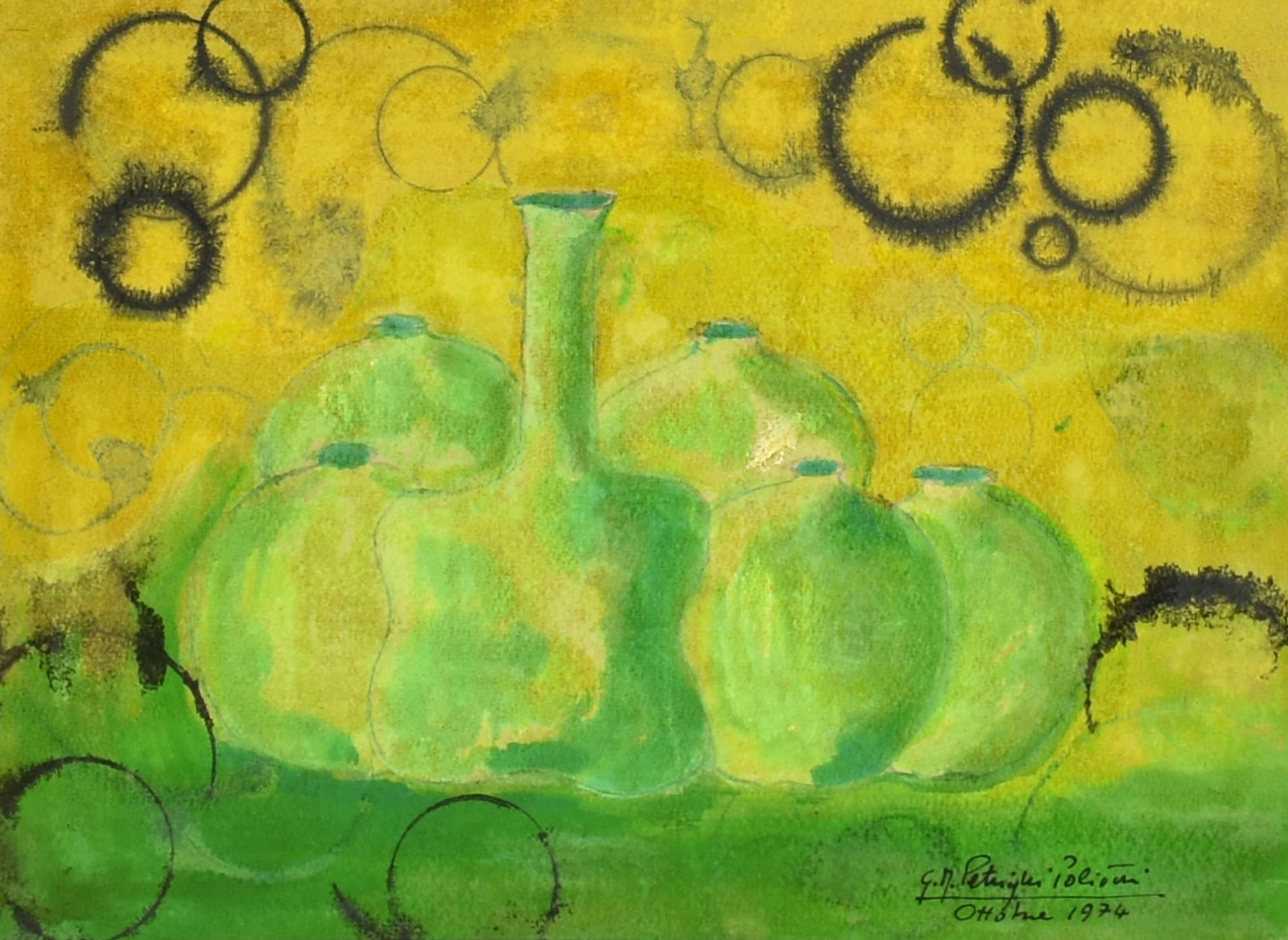 Polidori Petrighi NATURA MORTA tecnica mista su carta, cm 24x30 firma e data...
