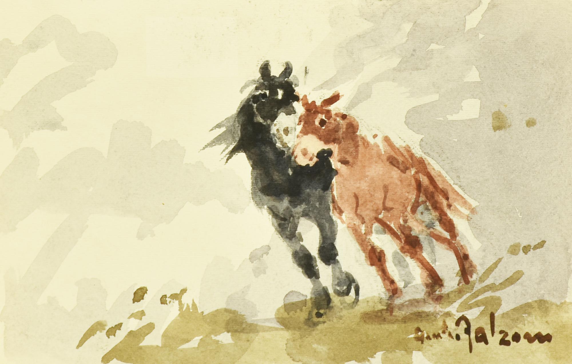 Lotto 77 | Giulio Falzoni CAVALLI acquarello su carta, cm 15x23 firma sul retro: firma...