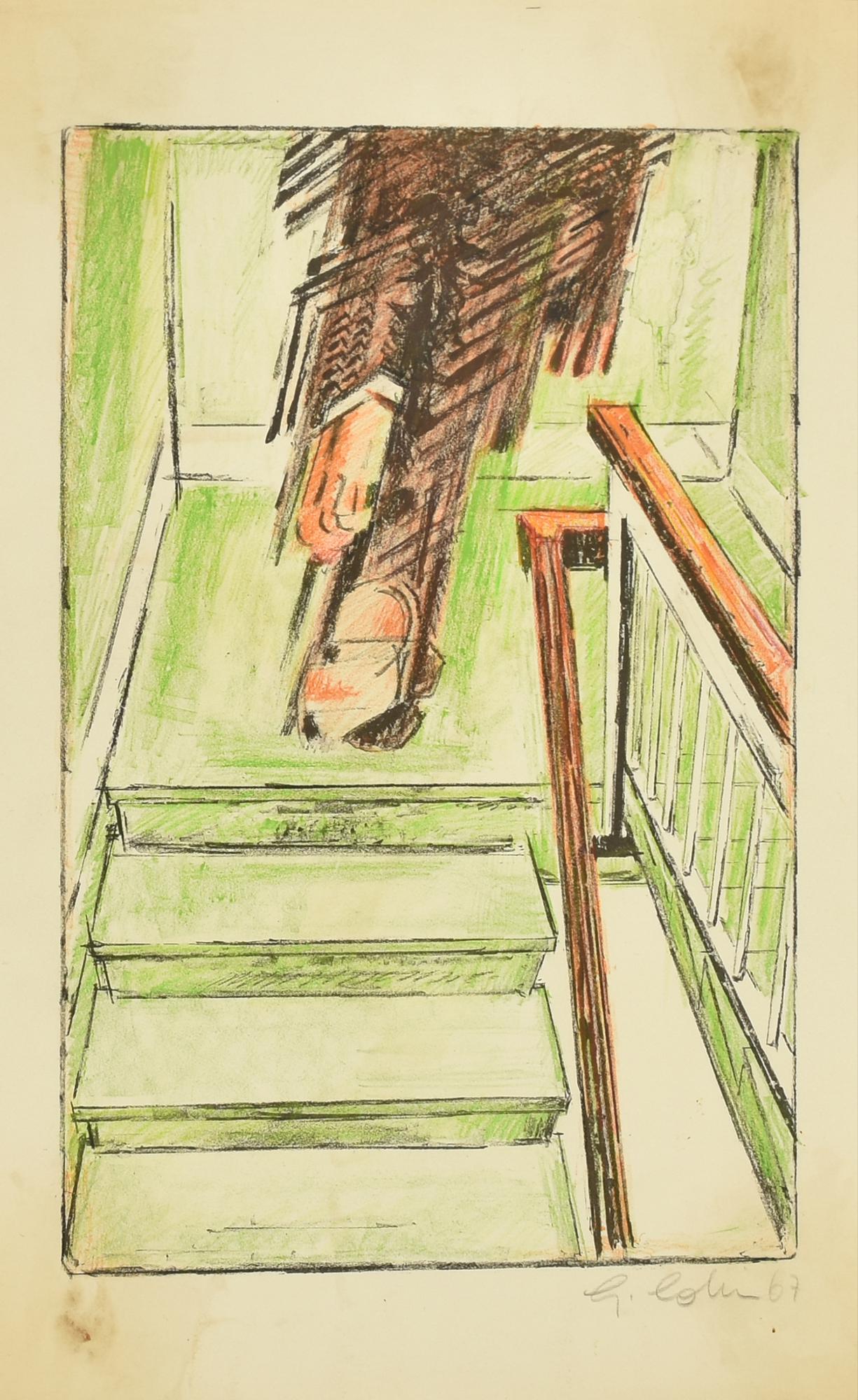 Ignoto INTERNO CON SCALE tecnica mista su carta, cm 48x29 firma e data...