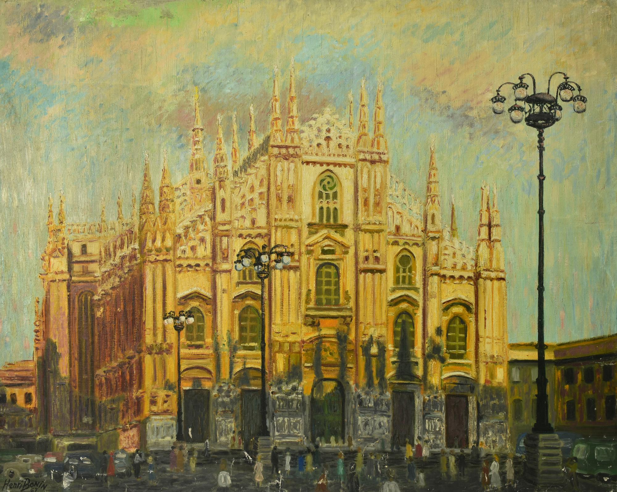 Henri Bonin DUOMO DI MILANO olio su tela, cm 116x90 firma e data eseguito nel...