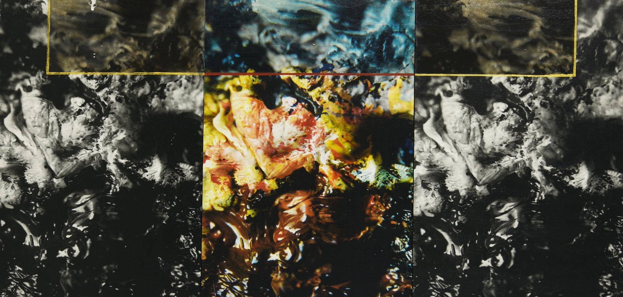 tecnica mista su fotocopie applicate su tavola, cm 30x60