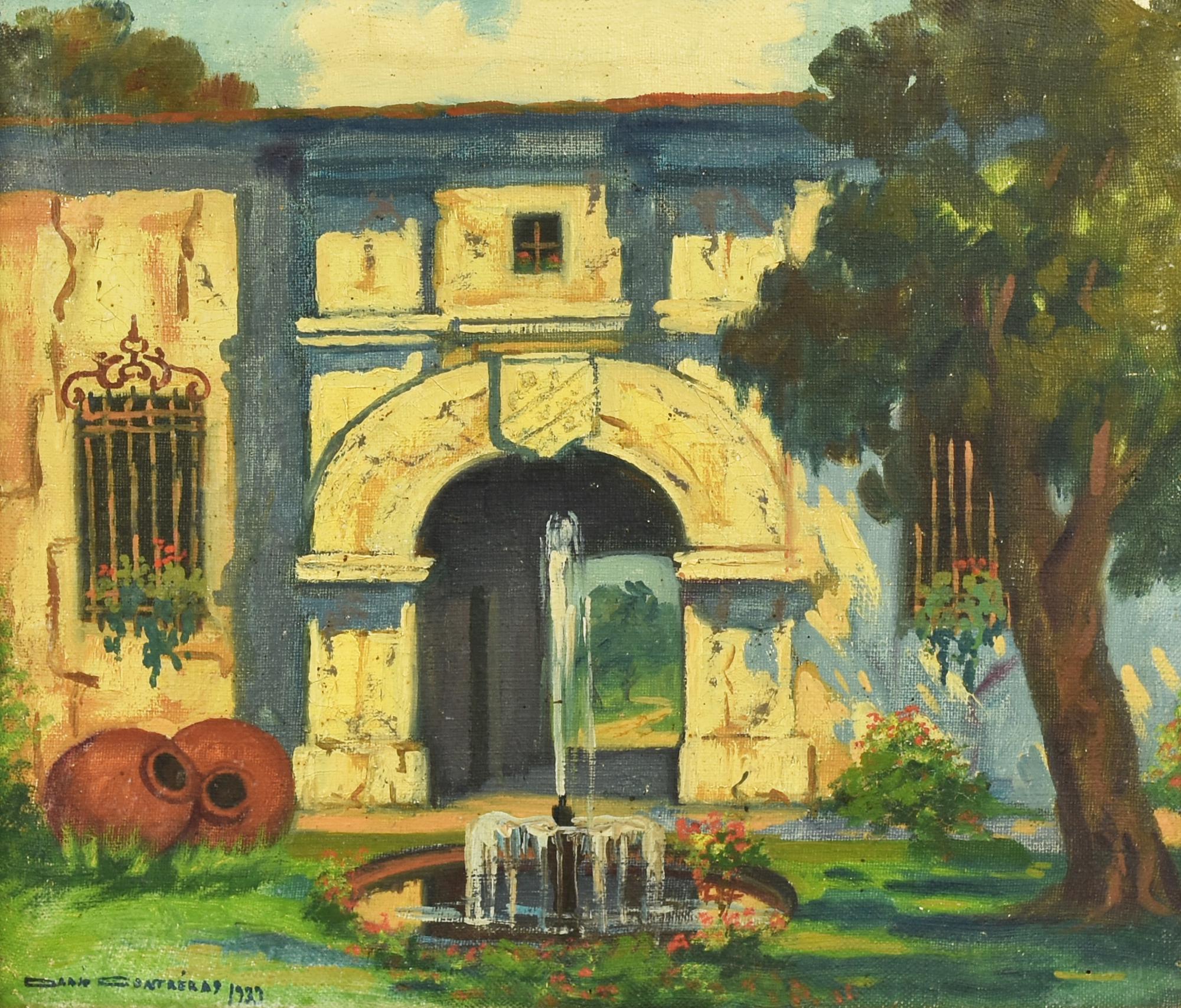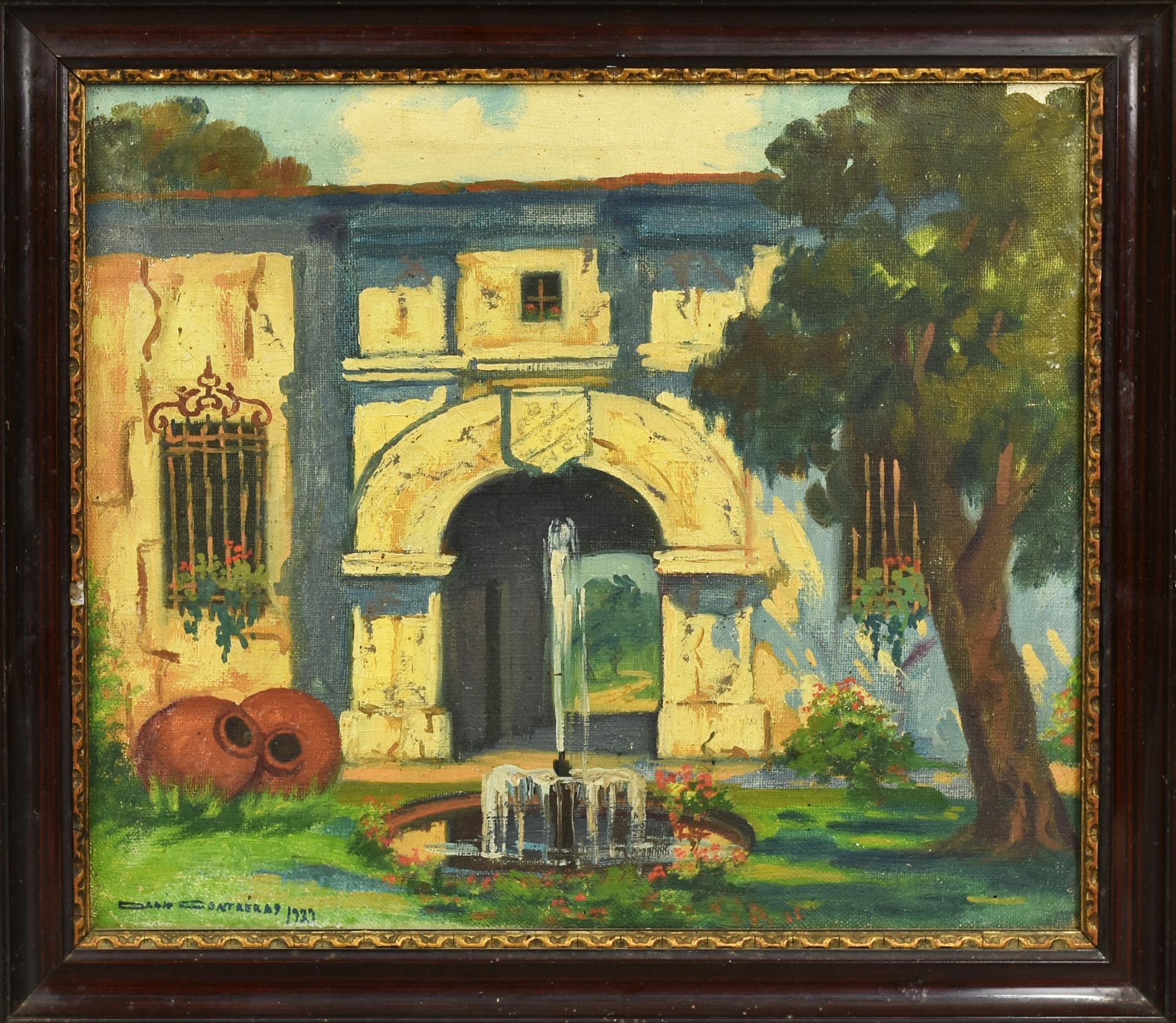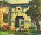 Dario Contreras GIARDINO olio su tela di juta, cm 29x34 firma e data eseguito...