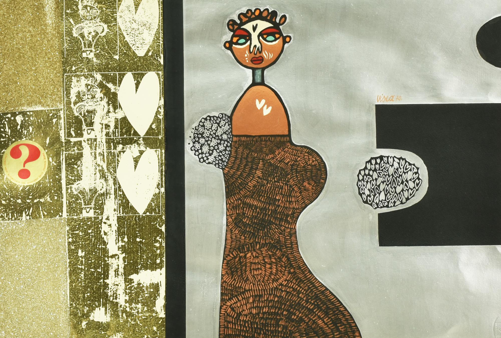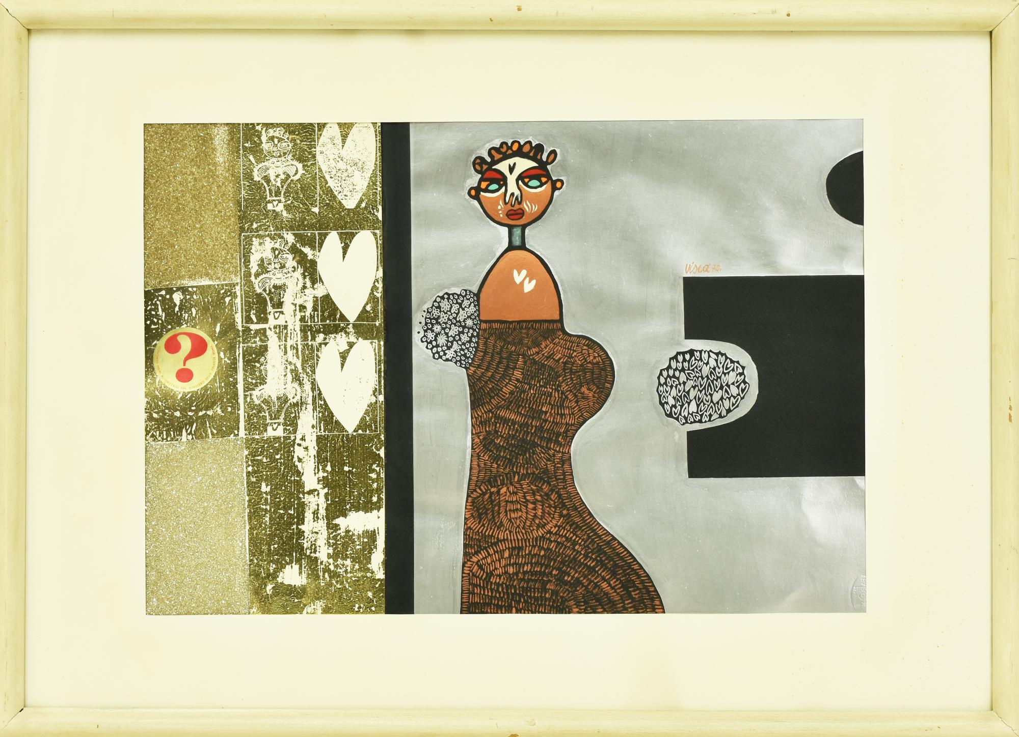 Visca COMPOSIZIONE tecnica mista su carta, cm 35x50 firma, data e timbro...