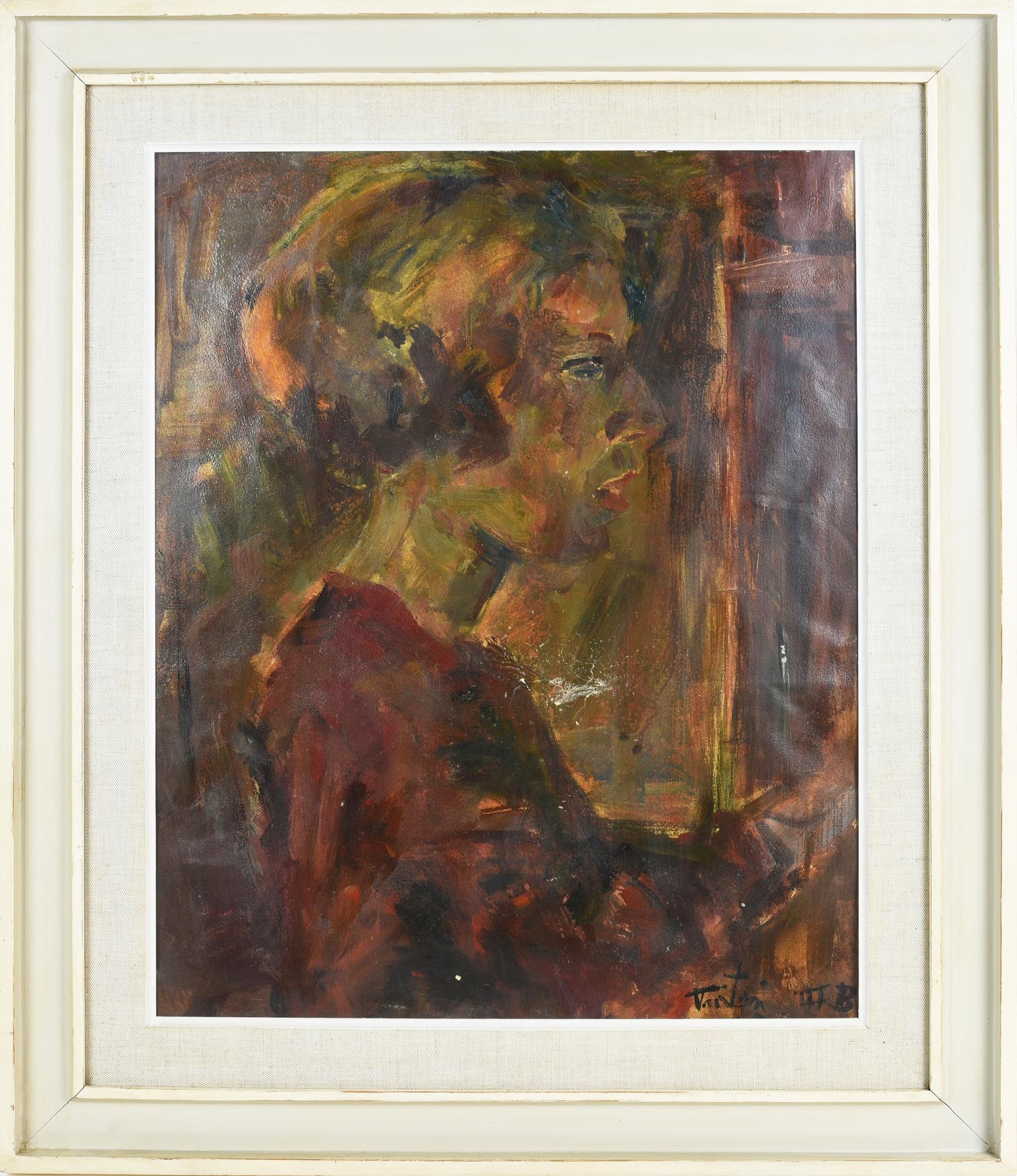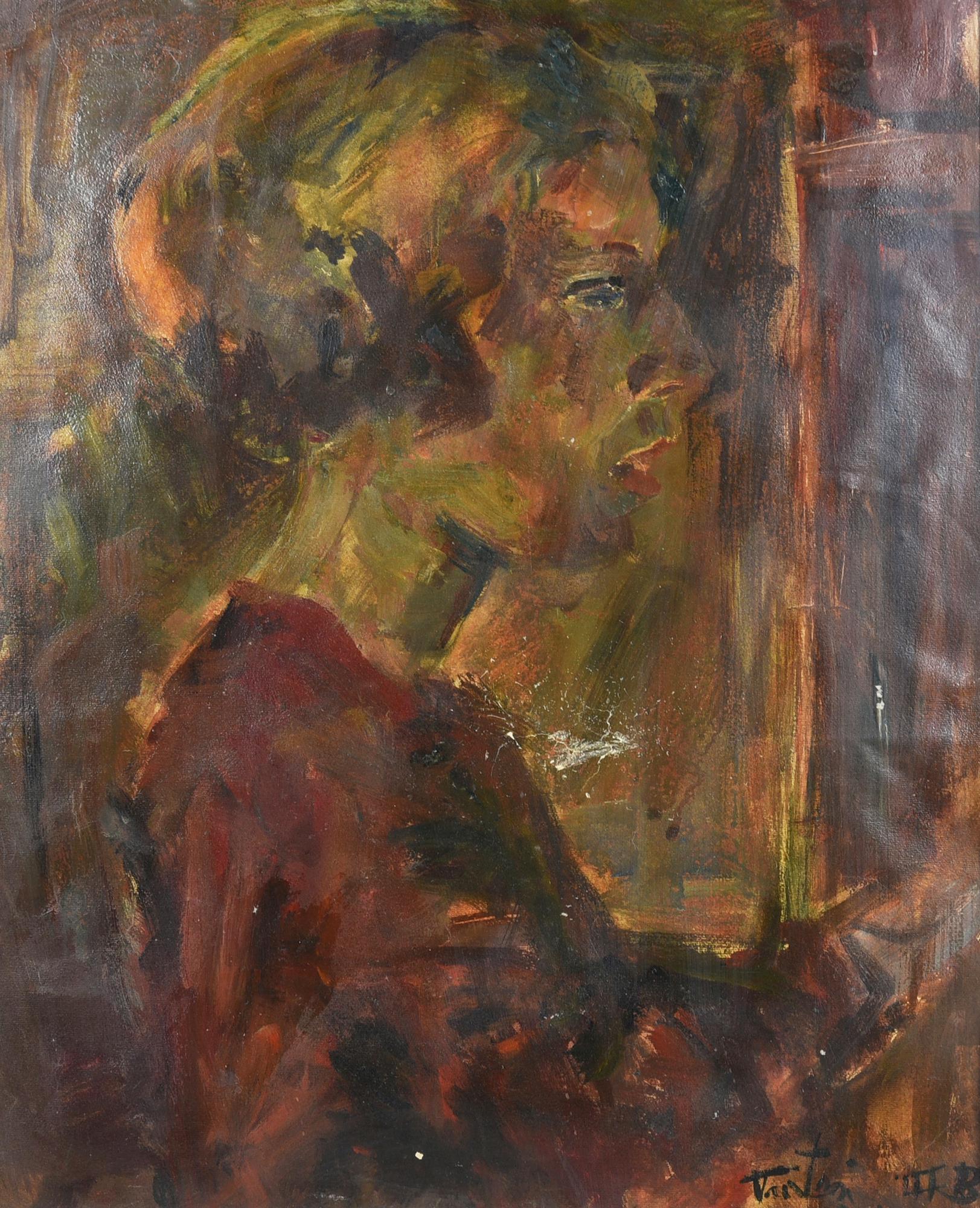 Scuola del XX secolo RITRATTO FEMMINILE olio su carta, cm 51x40...