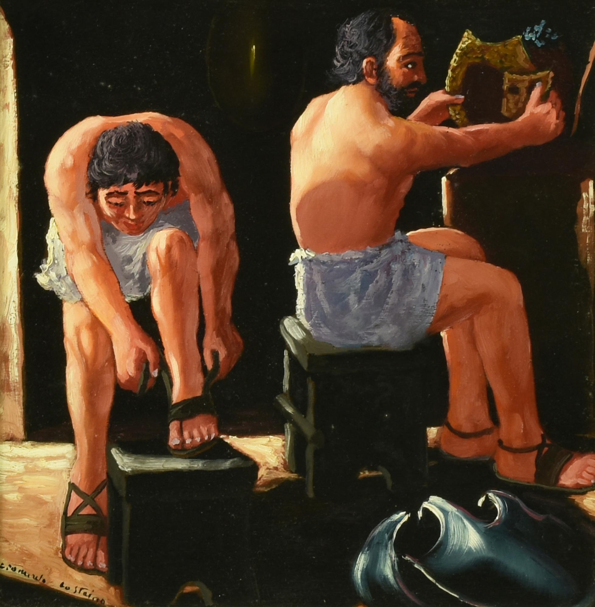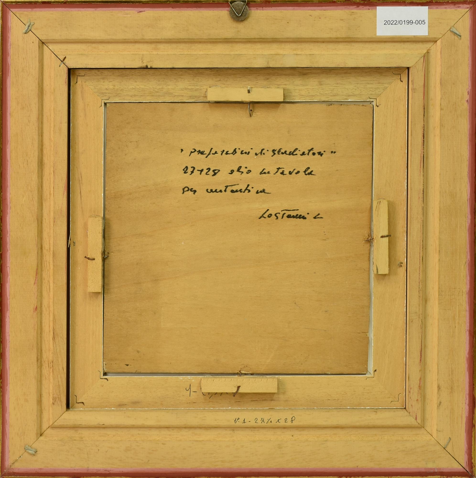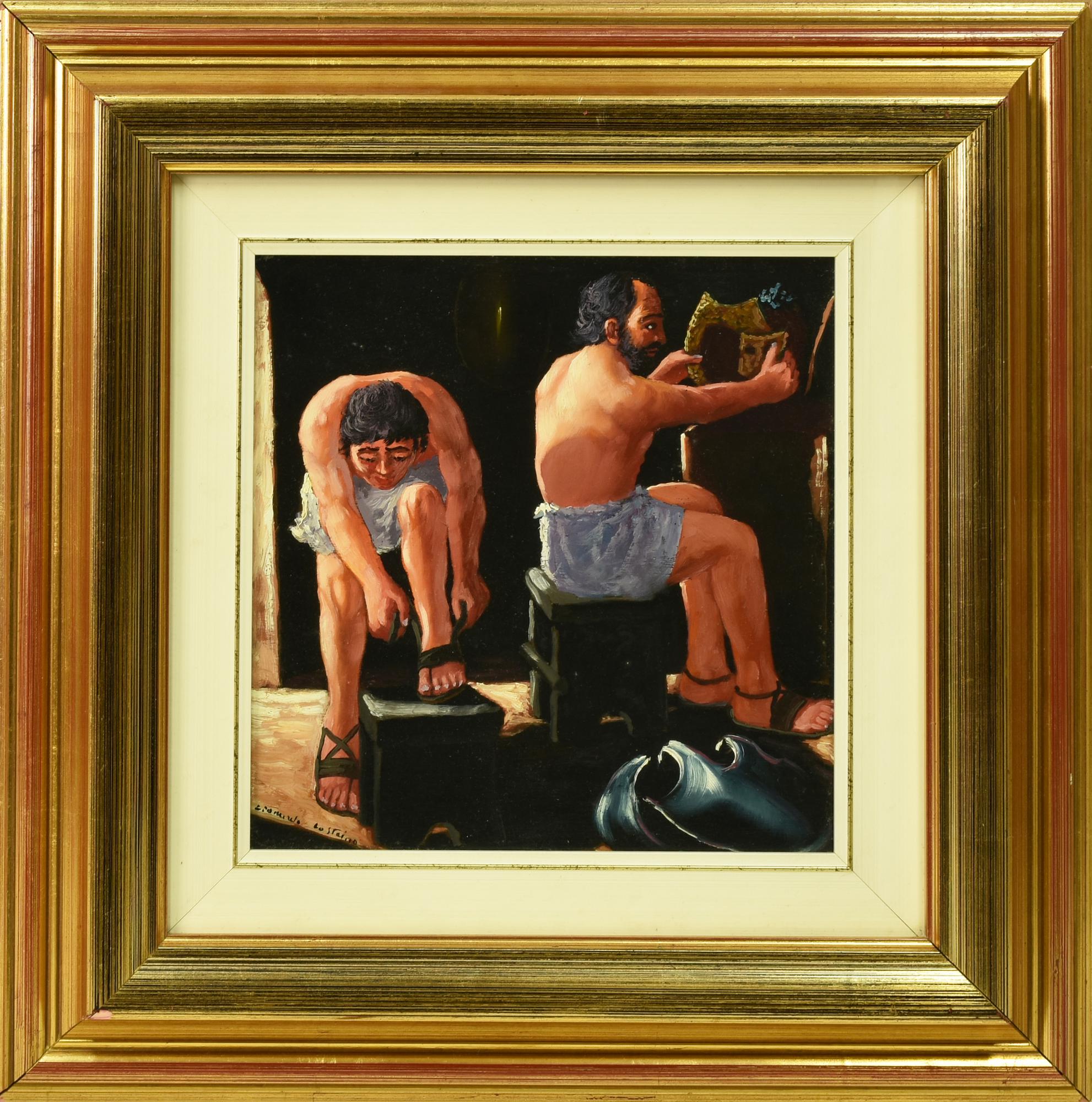 Leonardo Lo Staino I GLADIATORI olio su tavola, cm 29x27 firma sul retro:...