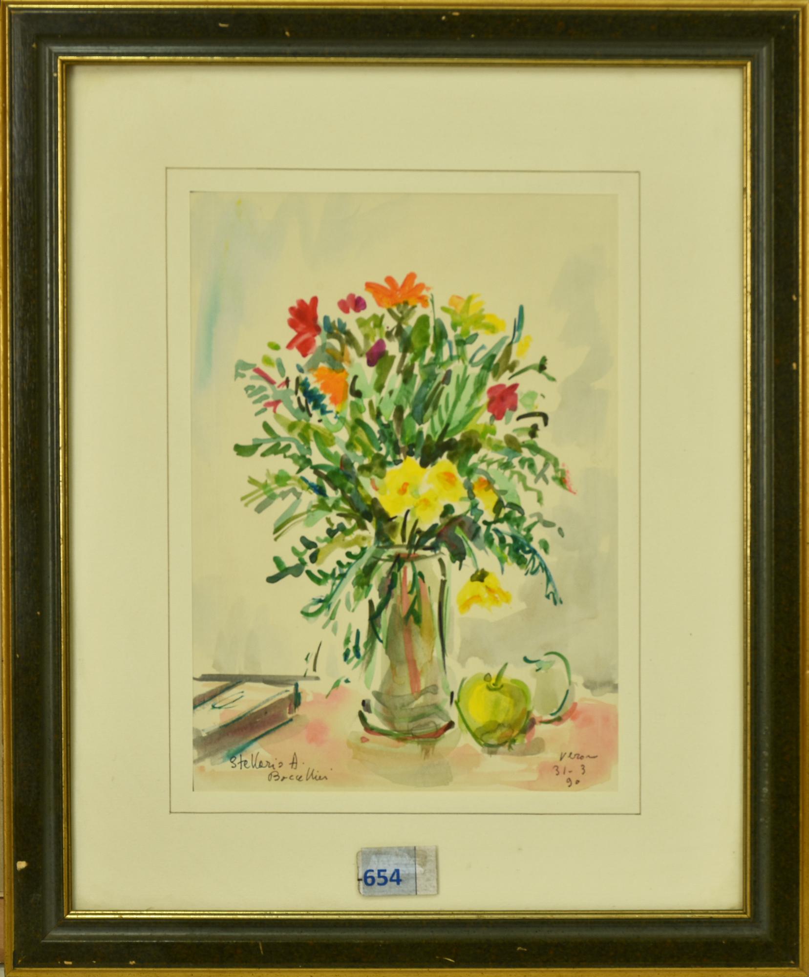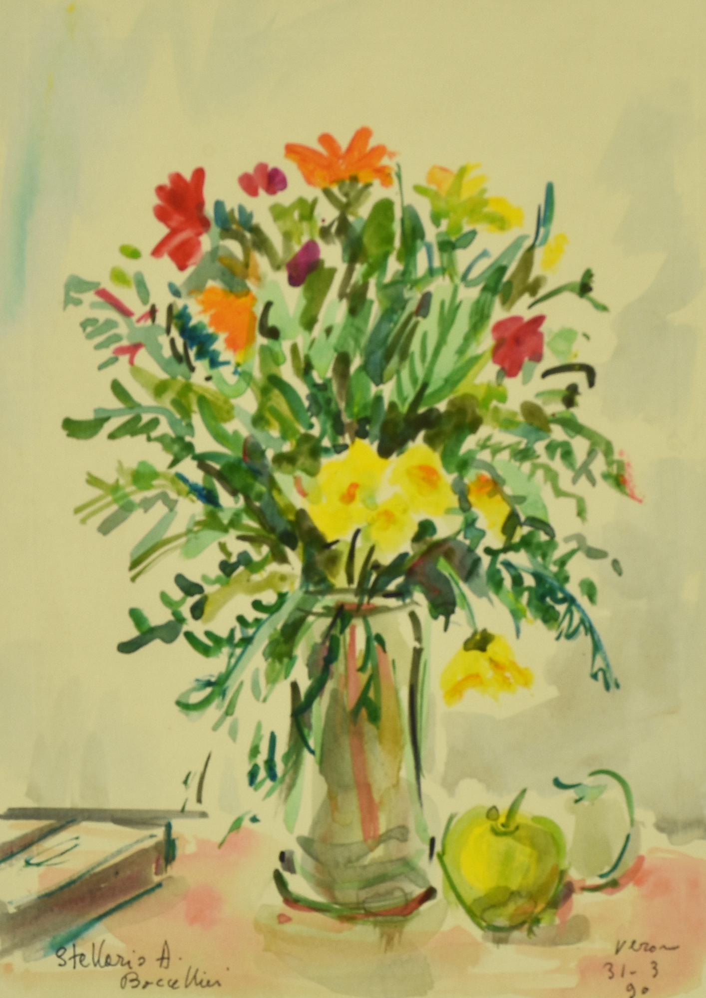Lotto 174 | Baccellieri Stellario VASO DI FIORI CON MELE acquarello su carta, cm 28x20...