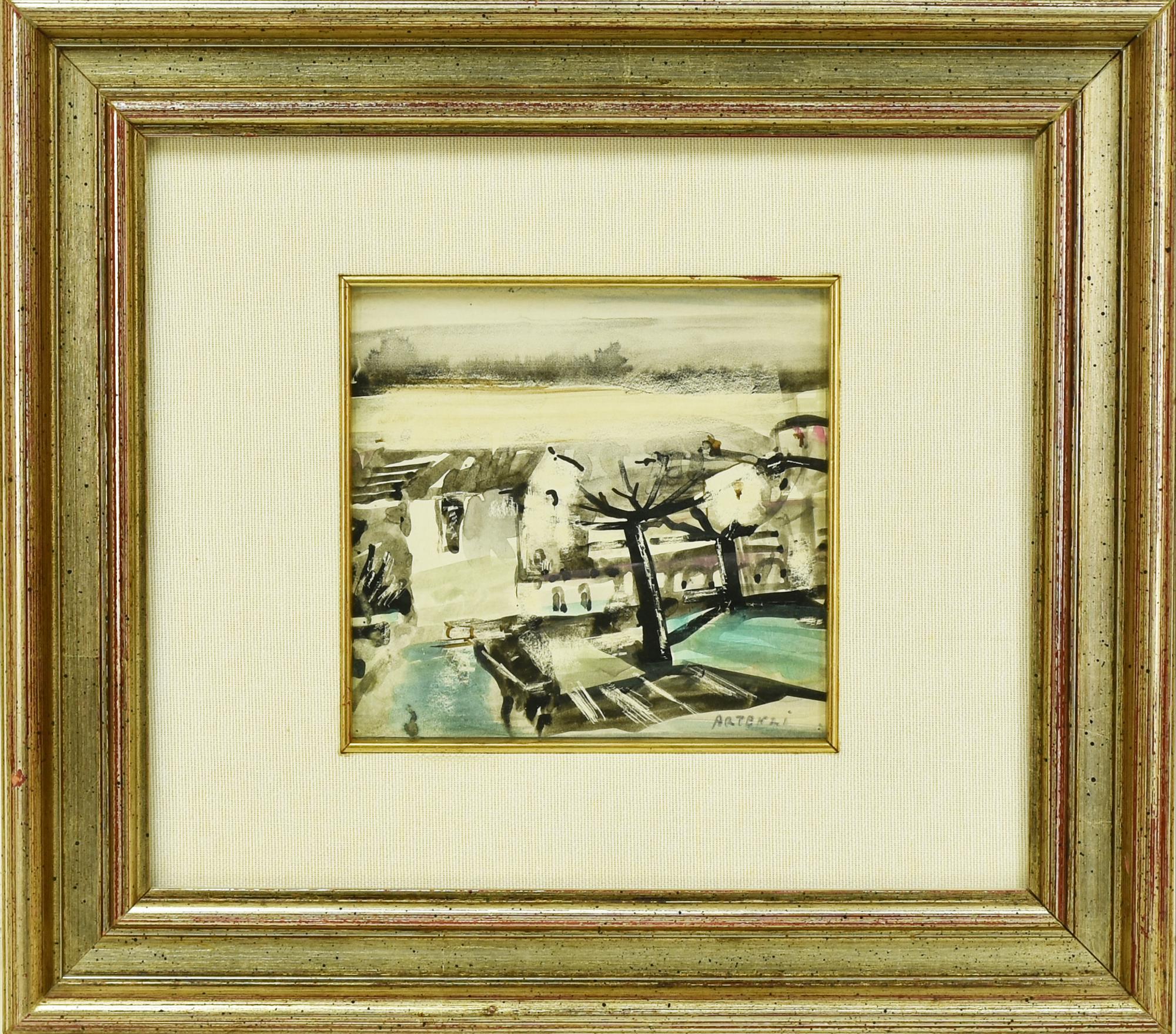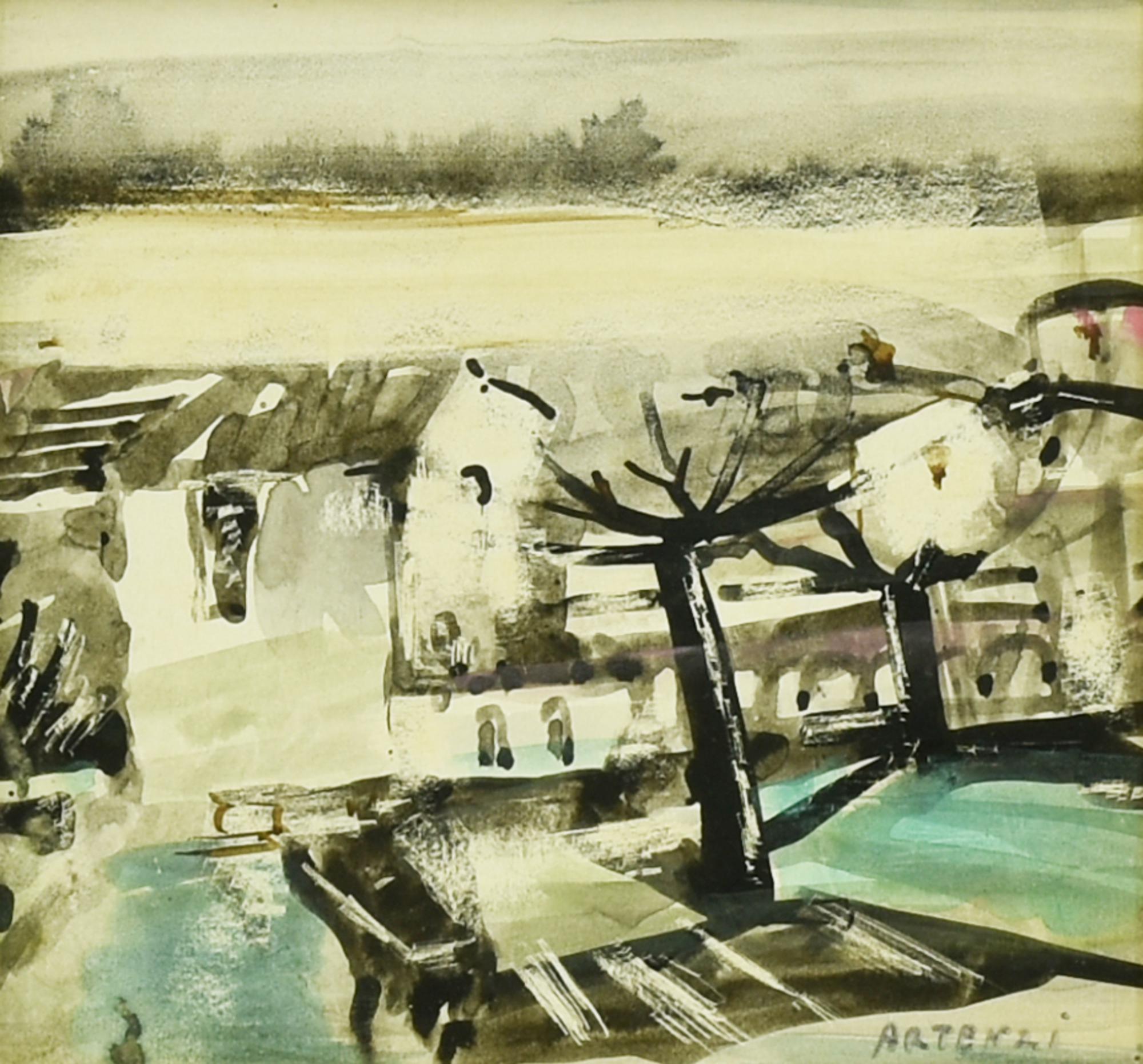 Artenzi PAESAGGIO CON ALBERO tecnica mista su cartoncino, cm 16x17 firma