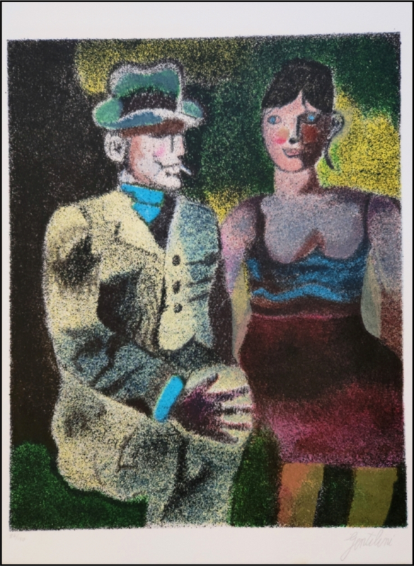 GENTILINI FRANCO Faenza 1909-Roma 1981 “Senza titolo” litografia su cartoncino cm 35x50. Firma e timbro a secco sul fronte in basso a destra, tiratura 87/150 a sinistra. Sul retro firma per autentica di Luciano Gentilini.