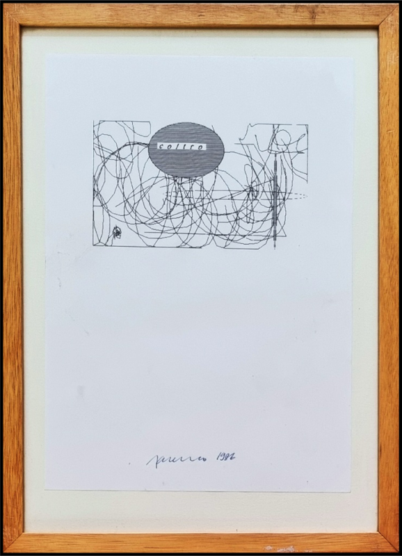 SARENCO Brescia 1945-Salò 2017 “Coltro” jet ink print su carta cm 25x34 del 1986. Firmata e datata sul fronte in basso al centro. Opera pubblicata a pag.118 del catalogo ragionato Volume I° Achille Bonito Oliva.