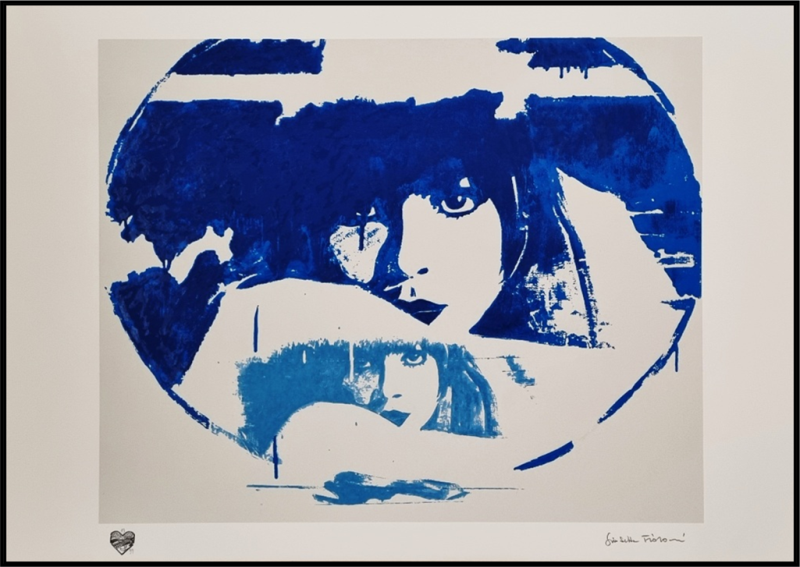 FIORONI GIOSETTA Roma 1932 “Doppio liberty light blu” serigrafia polimaterica e carborundum a 12 colori su carta cm 100x70. Firmata sul fronte in basso a destra, tiratura 13/99 a sinistra. Certificato di autenticità a cura dell’Archivio Parise Fioroni.