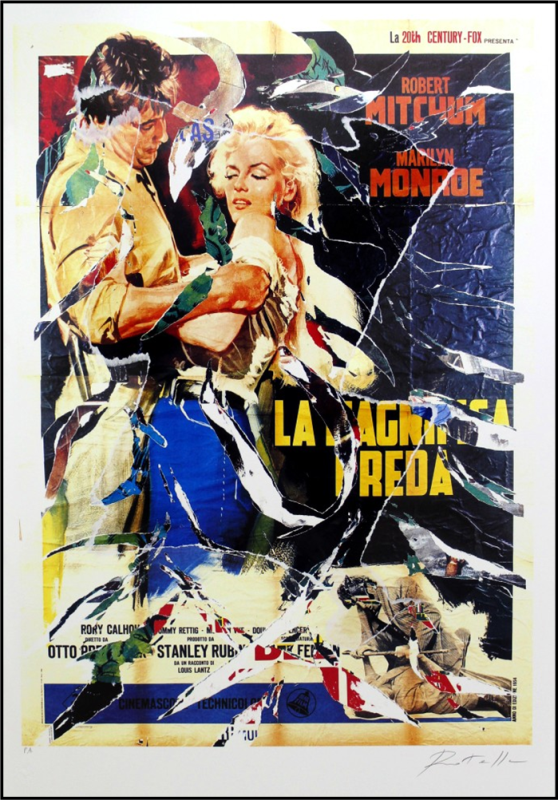 ROTELLA MIMMO Catanzaro 1918-Milano 2006 “La magnifica preda” multiplo, decollage cm 70x100. Firmato sul fronte in basso a destra, esemplare P.A. Pubblicata sul catalogo “Multiples decollages”.