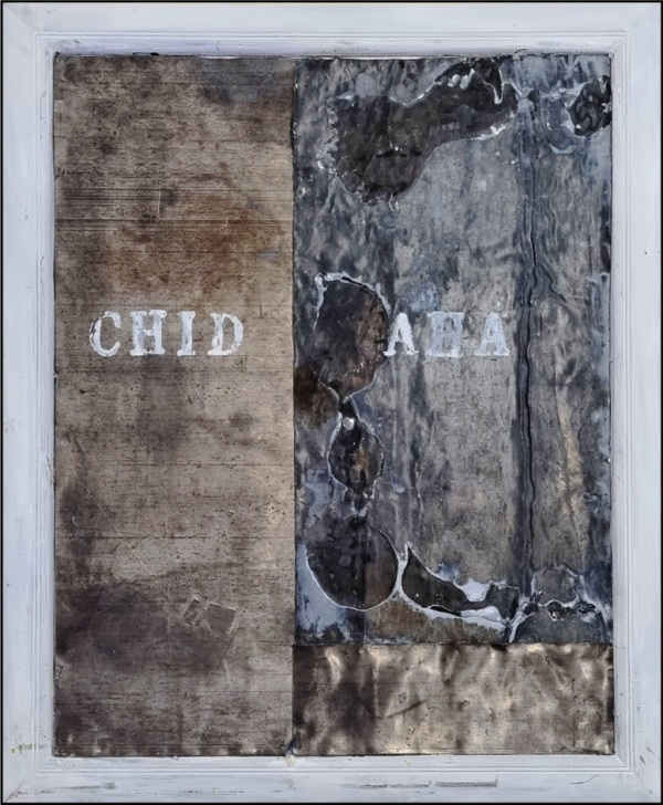 RAPETTI MOGOL ALFREDO Milano 1961 “Chi da ha” tecnica mista su lamina di piombo cm 40x50. Firma, titolo e anno sul cartoncino di copertura al retro. Certificato di autenticità a cura di MeetingArt.