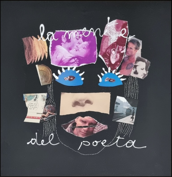 MARCUCCI LUCIA Firenze 1933 “La mente del poeta” acrilico e collage su tela cm 82x82 del 1997. Sul retro titolo, misure, descrizione, tecnica e firma. Opera pubblicata a pag.182 del “Catalogo generale delle opere di Lucia Marcucci” Volume I 1961-2011.