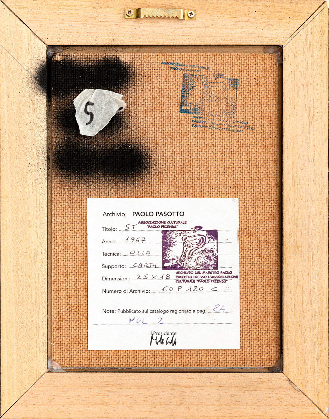 Etichetta dell'Artista, timbro dell'Associazione Culturale Paolo Friends al retro