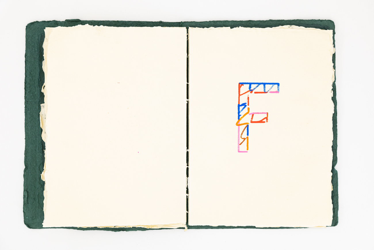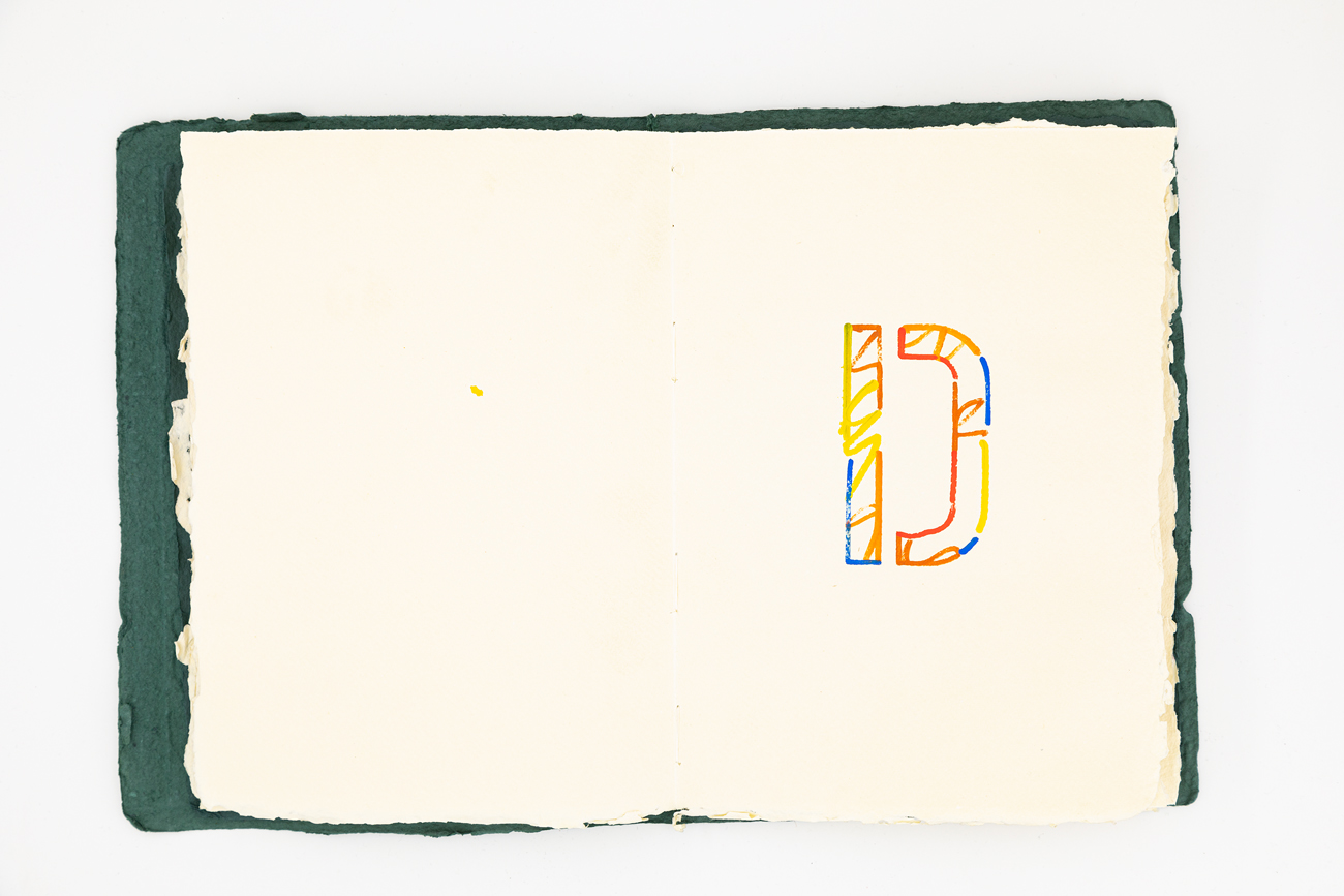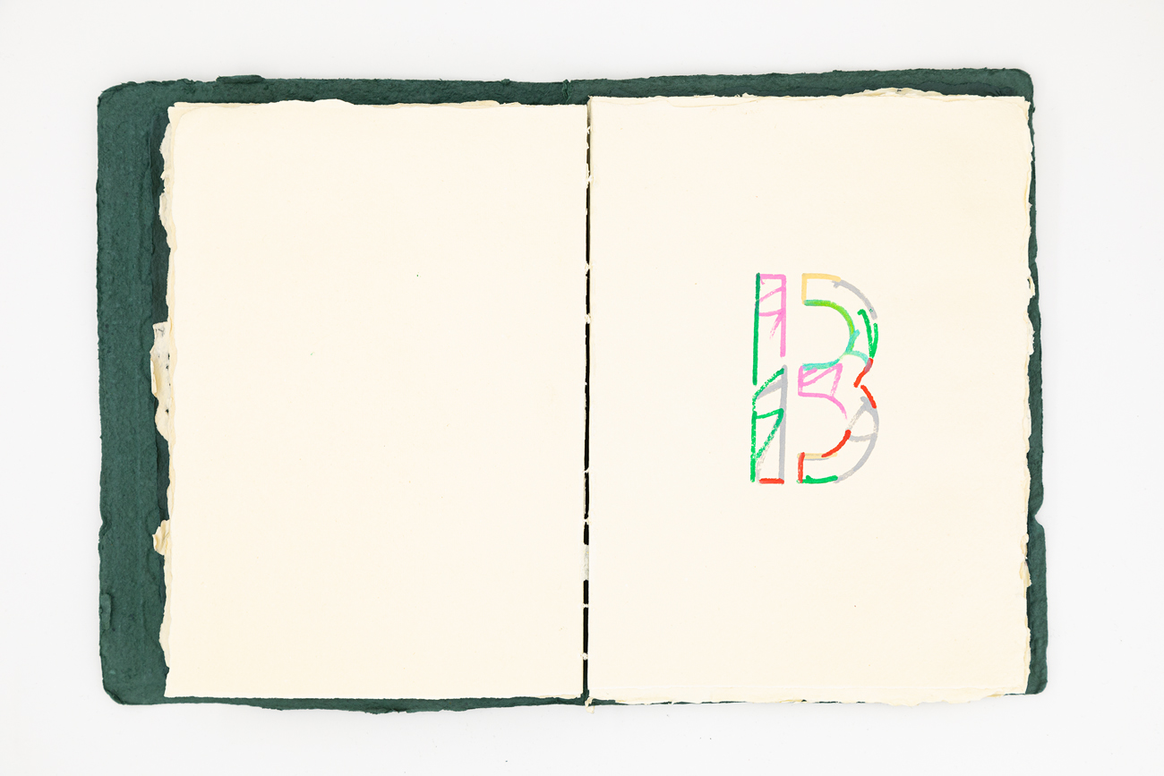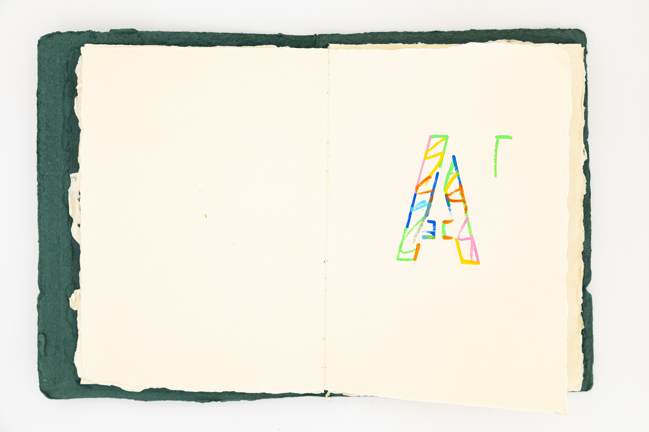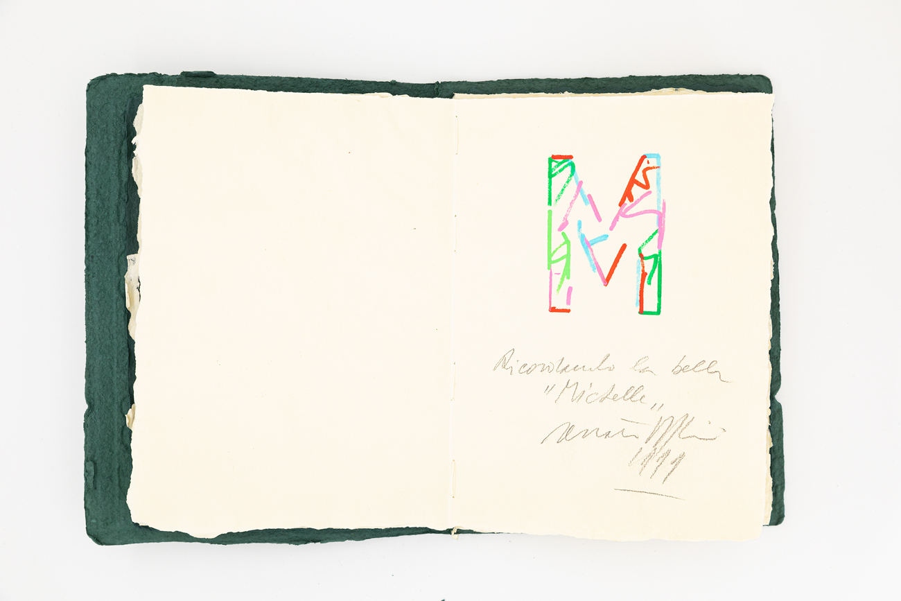 Libro interamente realizzato a mano recante all'interno un collage firmato e datato e pagine colorate a pennarello