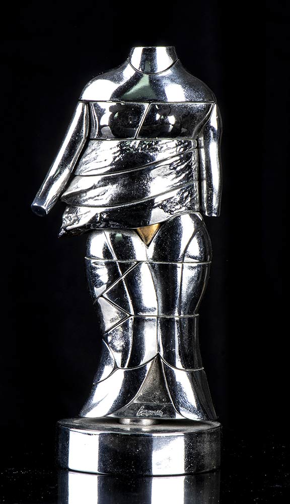 MIGUEL BERROCAL (Villanueva de Algaidas, 1933- Antequera, 2006): Scultura in metallo nichelato MINI CARIATIDE