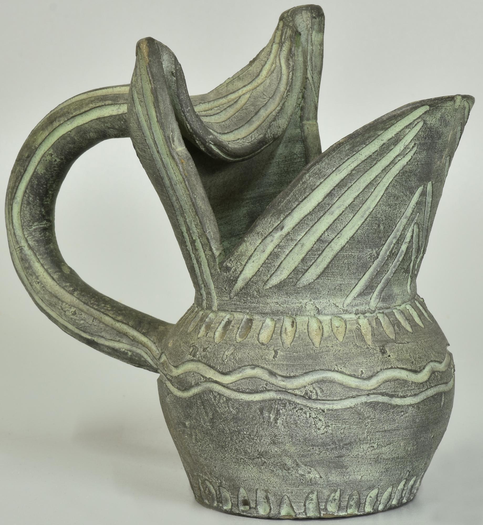 CARAFFA TRADIZIONALE SPAGNOLA in ceramica, h 12 diam 8 sul fondo Partenon...
