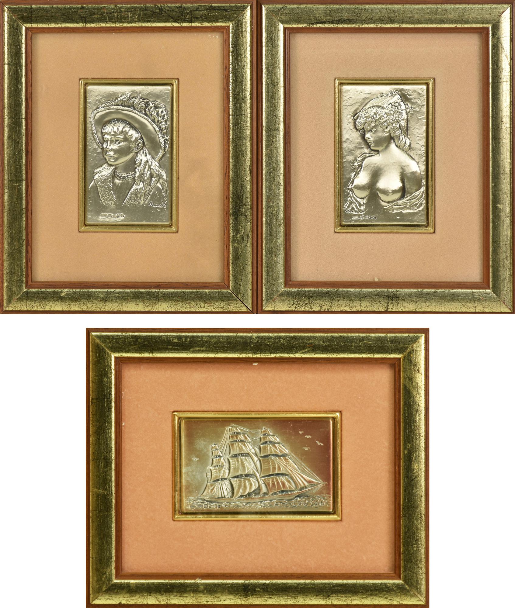 LOTTO DI 3 BASSORILIEVI su lamina di argento omaggi a Renoir, Manet e Cutty Sark