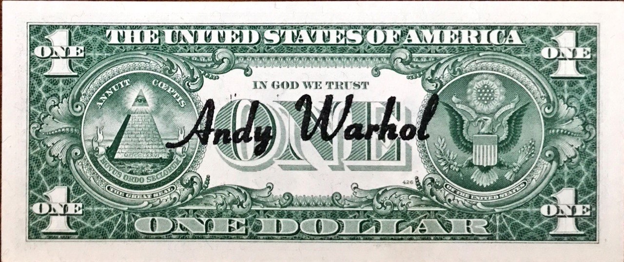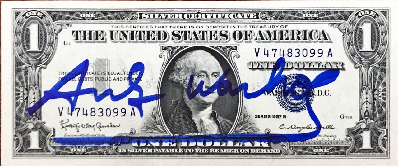 Firma sul fronte a pennarello e timbro Andy Warhol al verso