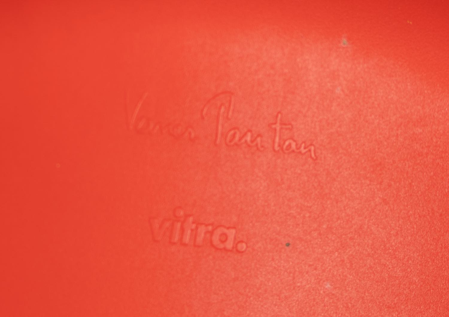 Struttura in propilene tinto in vari colori con finitura opaca, recano al retro iscrizione impressa “Verner Panton/Vitra”, H cm 61x37x50 – H seduta cm 34.