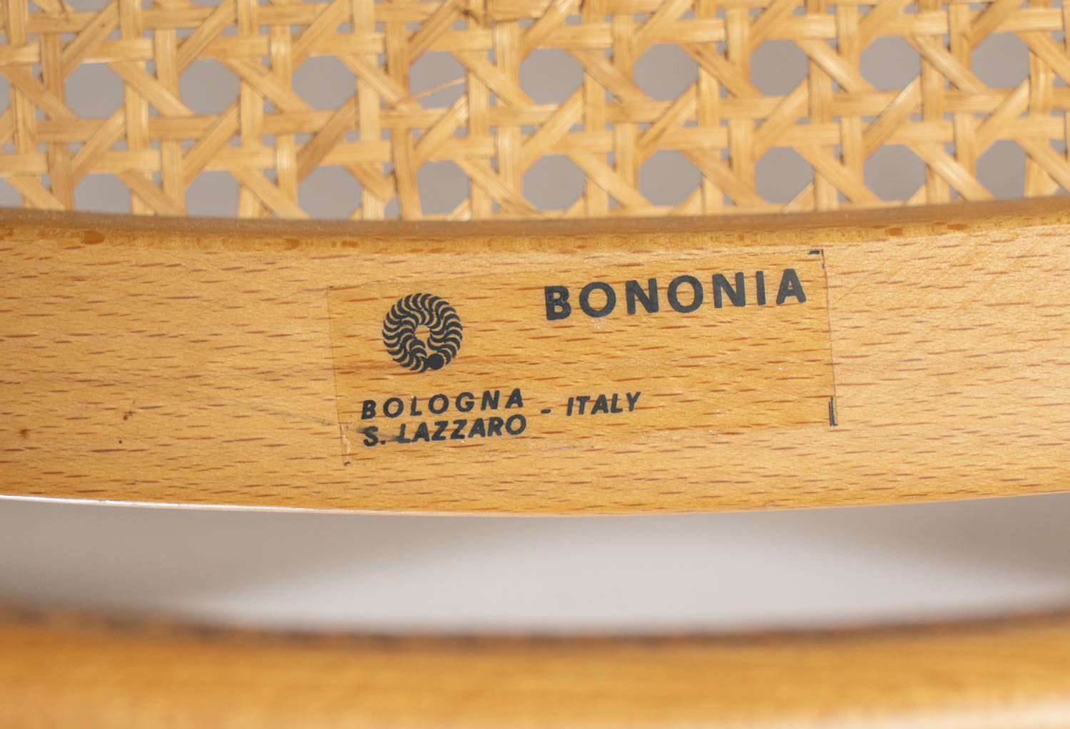 Struttura in metallo cromato, seduta e schienale in rattan naturale e faggio, recano al retro etichetta della manifattura, H cm 80x46x55 – H seduta cm 46 (lievi usure – difetti)