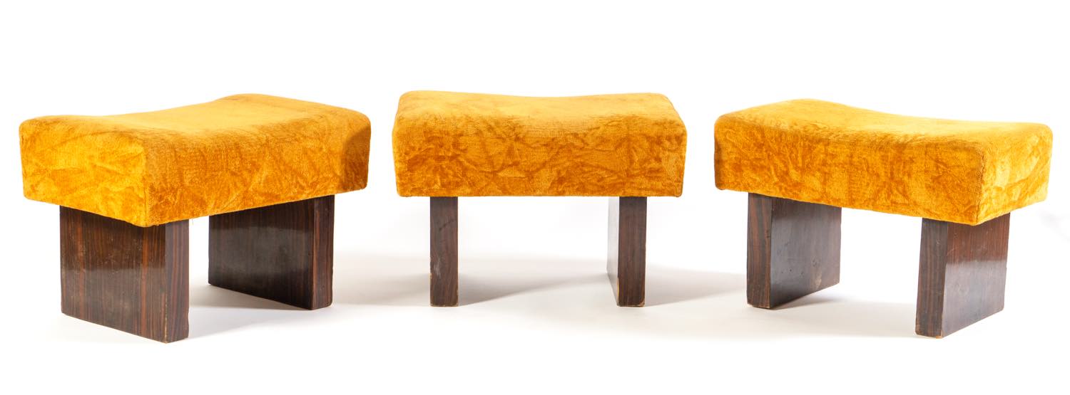 Seduta imbottita rivestita in velluto ocra, H cm 40x60x40 (lievi usure – difetti)