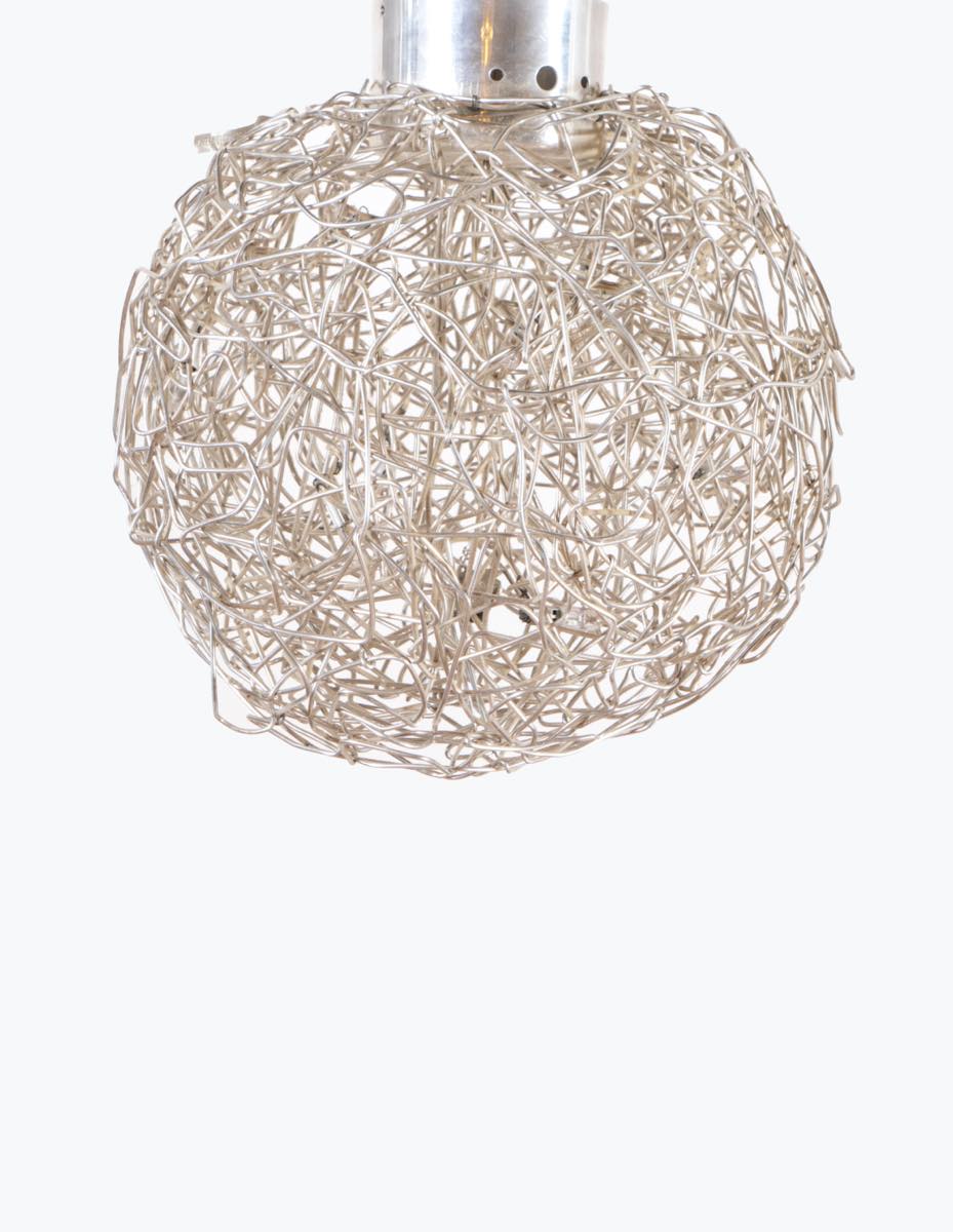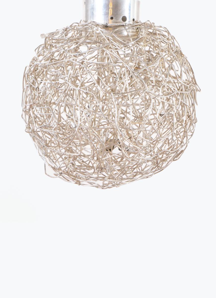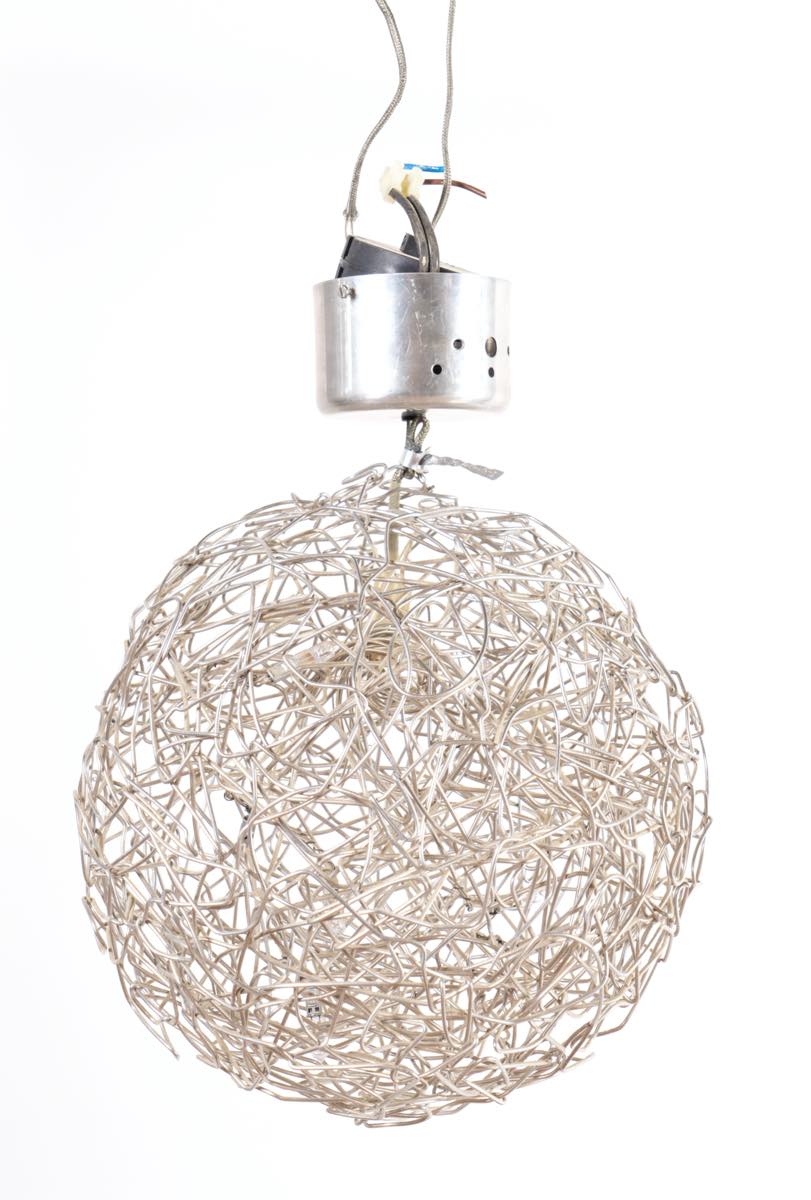 Struttura a gomitolo in alluminio completa di led interni, recano etichetta della manifattura in alluminio, diametro cm 30 (lievi usure)