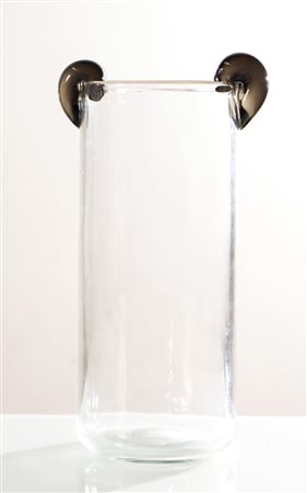 Venini, Vaso cilindrico in vetro trasparente, Murano, Anni ‘80.