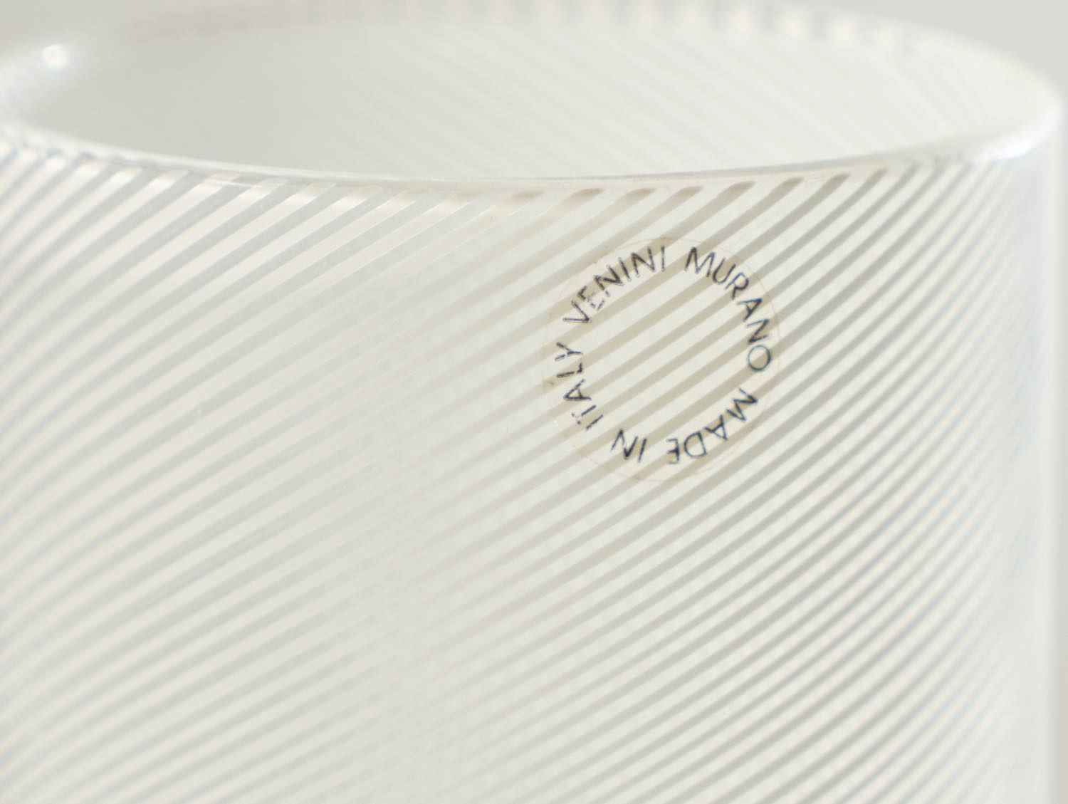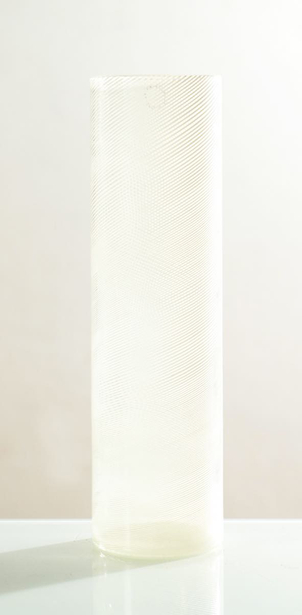 Venini, Vaso cilindrico in vetro trasparente, Murano, 1985.