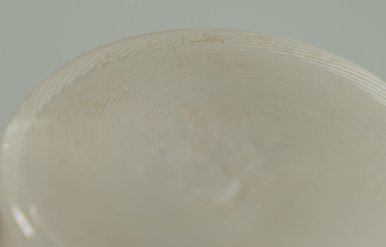 Lavorazione a filigrana bianca, reca etichetta della manifattura, presenta alla base firma e data incise, H cm 27 – diametro cm 7.5