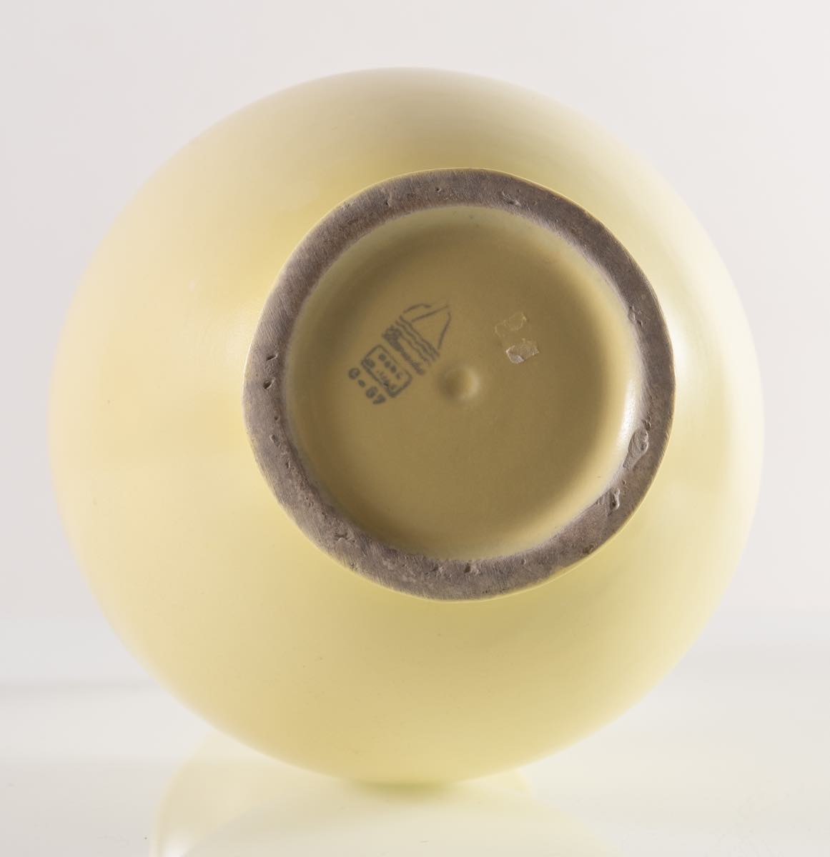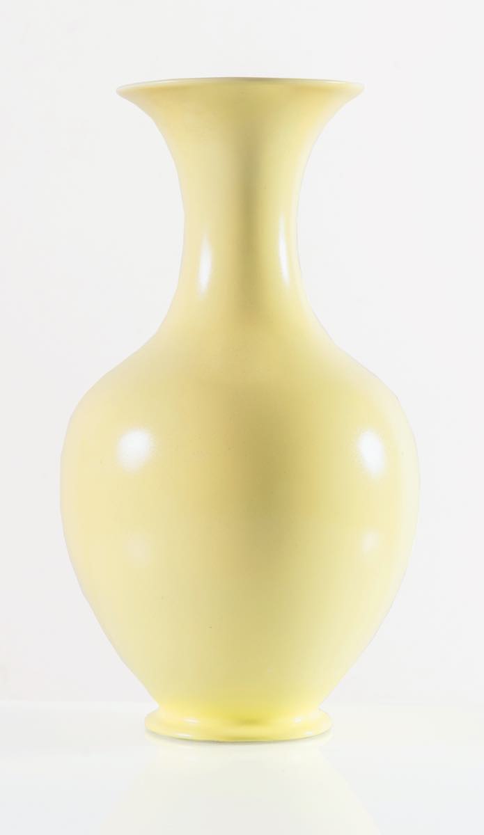 Imboccatura lievemente svasata, dipinto in giallo, reca alla base marchio della manifattura, H cm 33 (lieve restauro al piede)