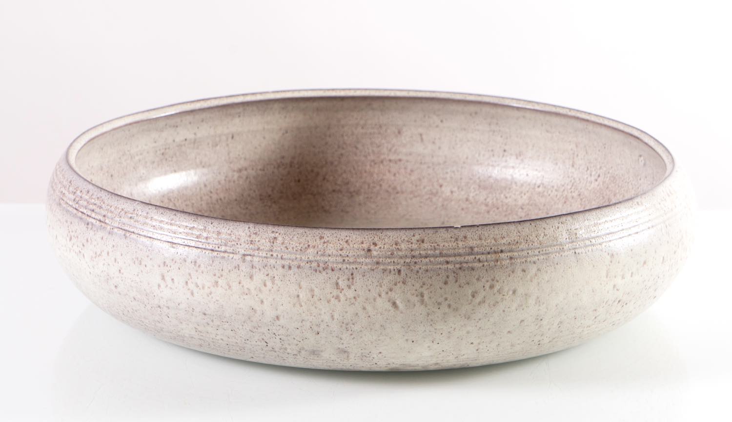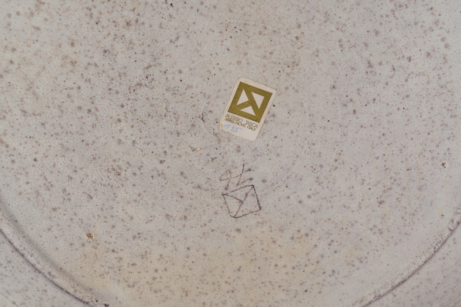 Corpo a sezione circolare bombata, reca alla base firma e data incise ed etichetta dell’artista con numero del modello “125”, H cm 12 – diametro cm 48 (lievi usure)