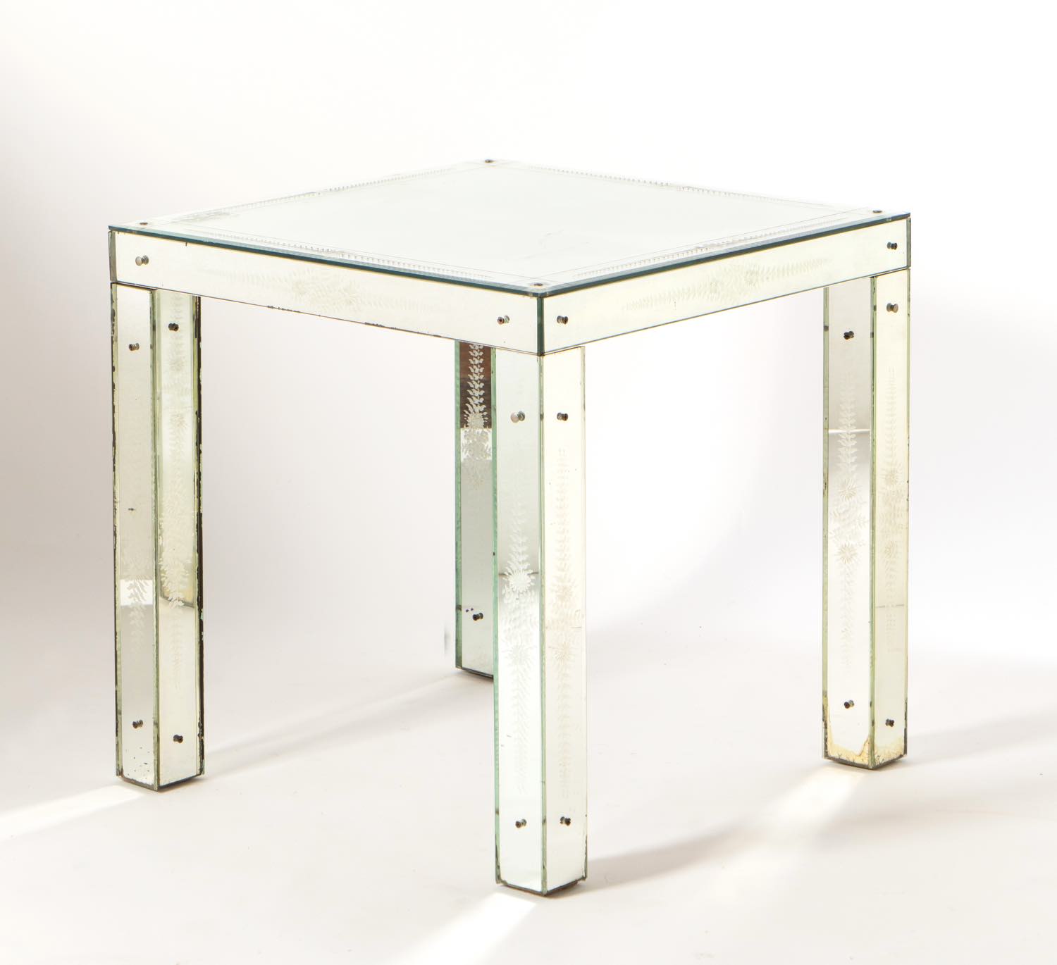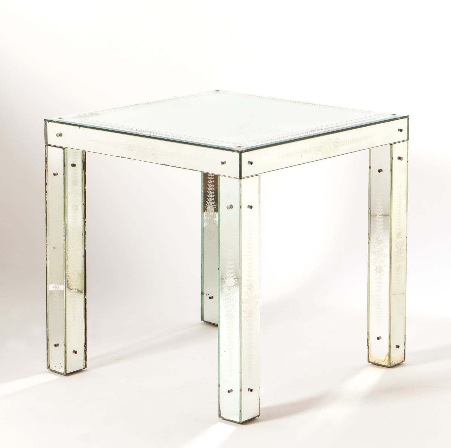 Interamente rivestito in specchio molato con decorazioni floreali incise e sabbiate, H cm 61x61x61 (ossidazioni – lievi mancanze - usure)