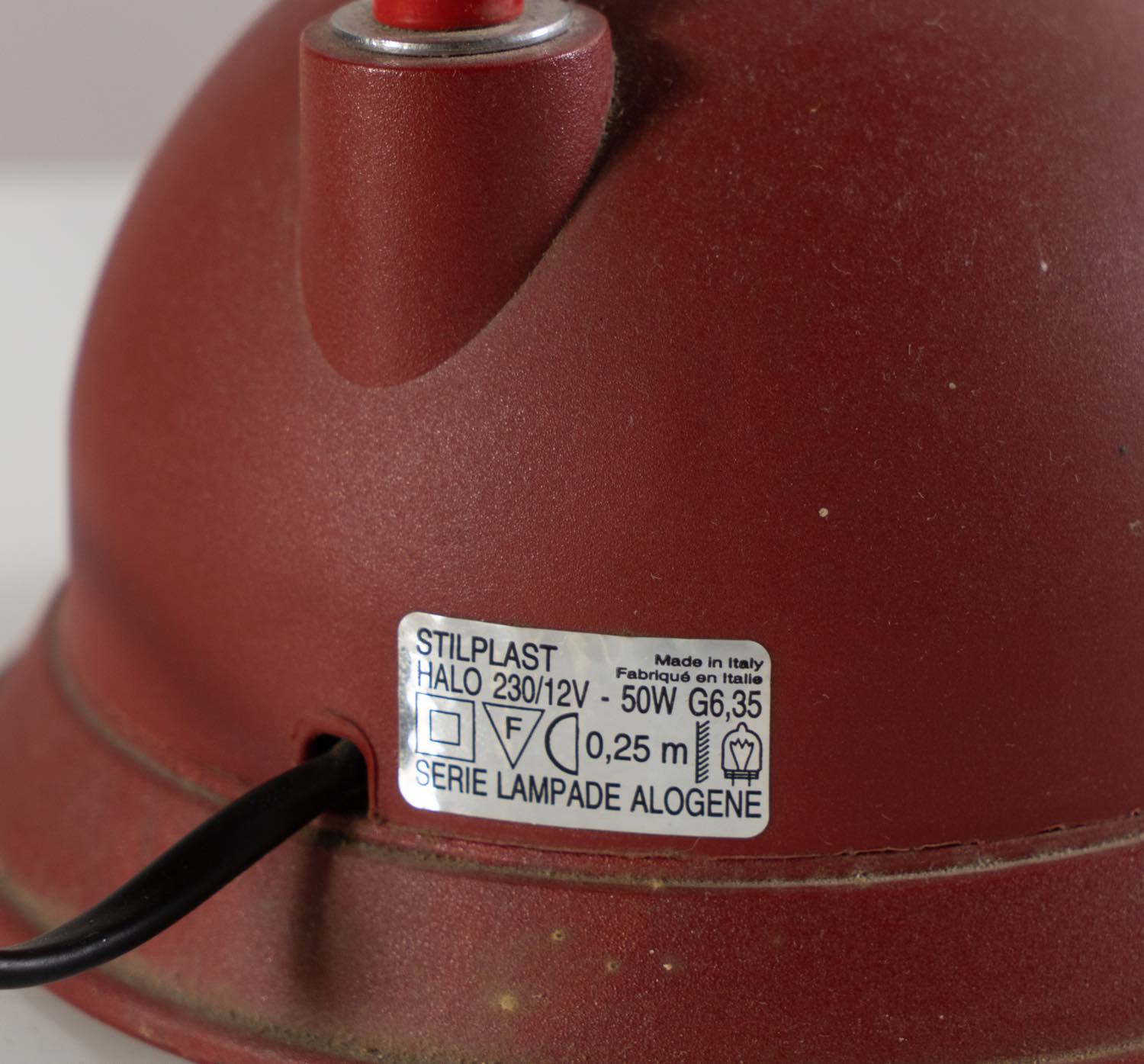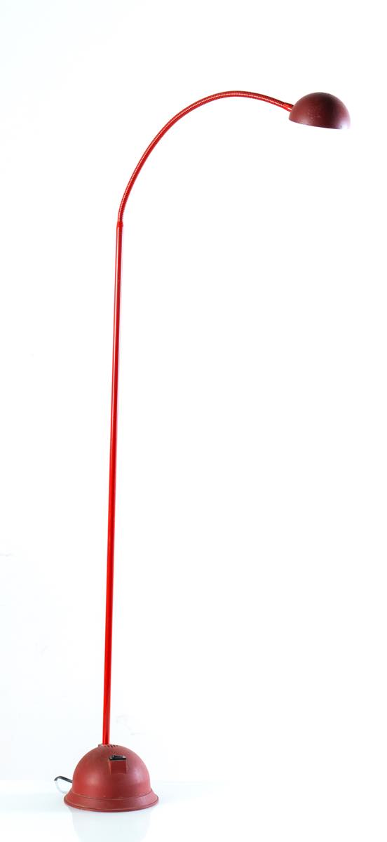 Struttura orientabile e snodabile laccata rossa poggiante su base a semisfera in materiale plastico, reca al retro della base etichetta della manifattura, H max cm 150 (lievi usure – difetti)