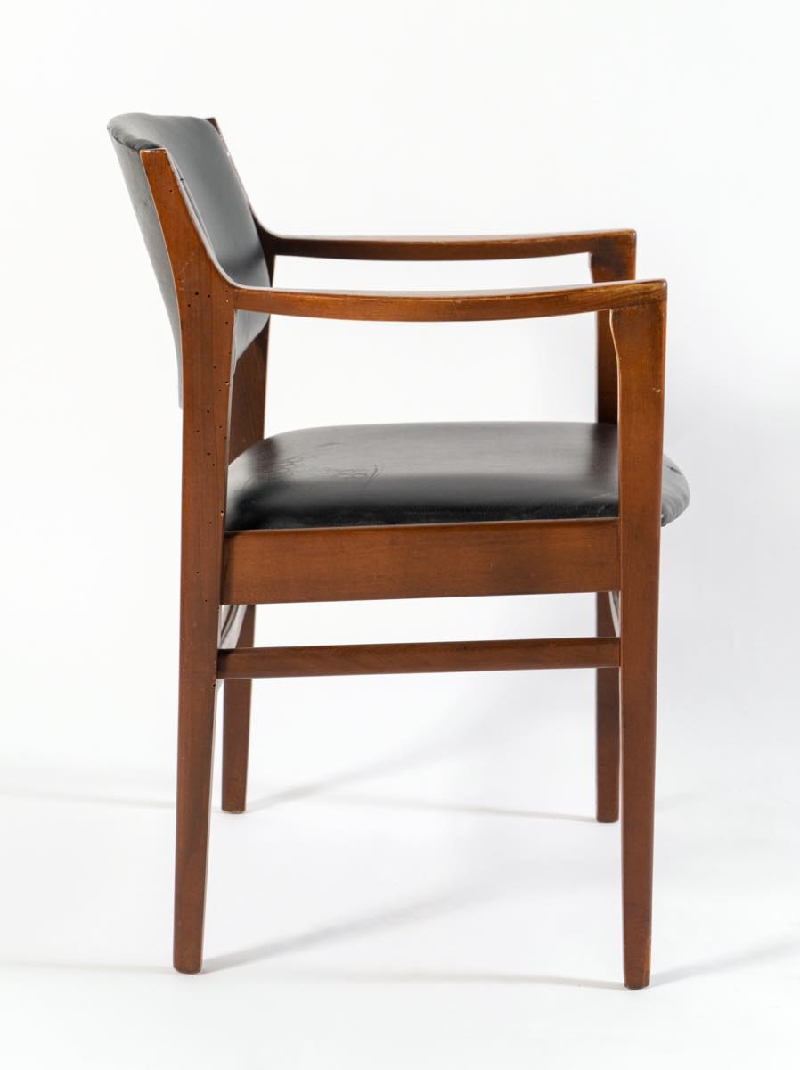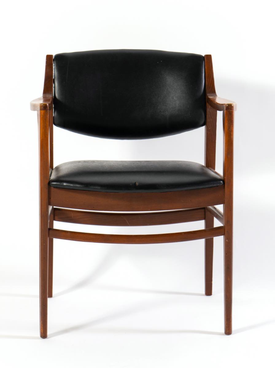 Seduta e schienale imbottiti rivestiti in skay nero, H cm 50x59x50 – H seduta cm 44 (usure - difetti)