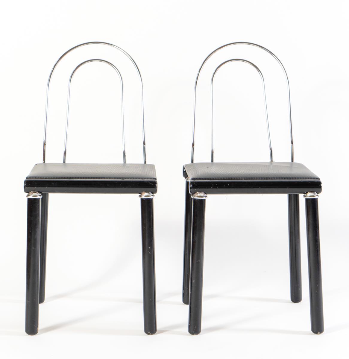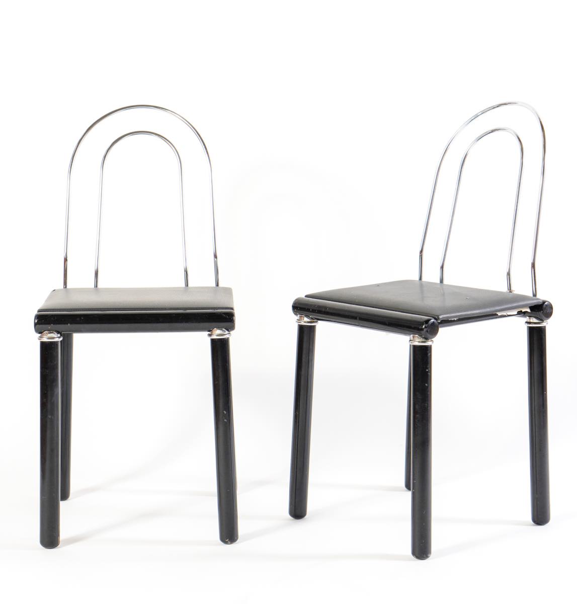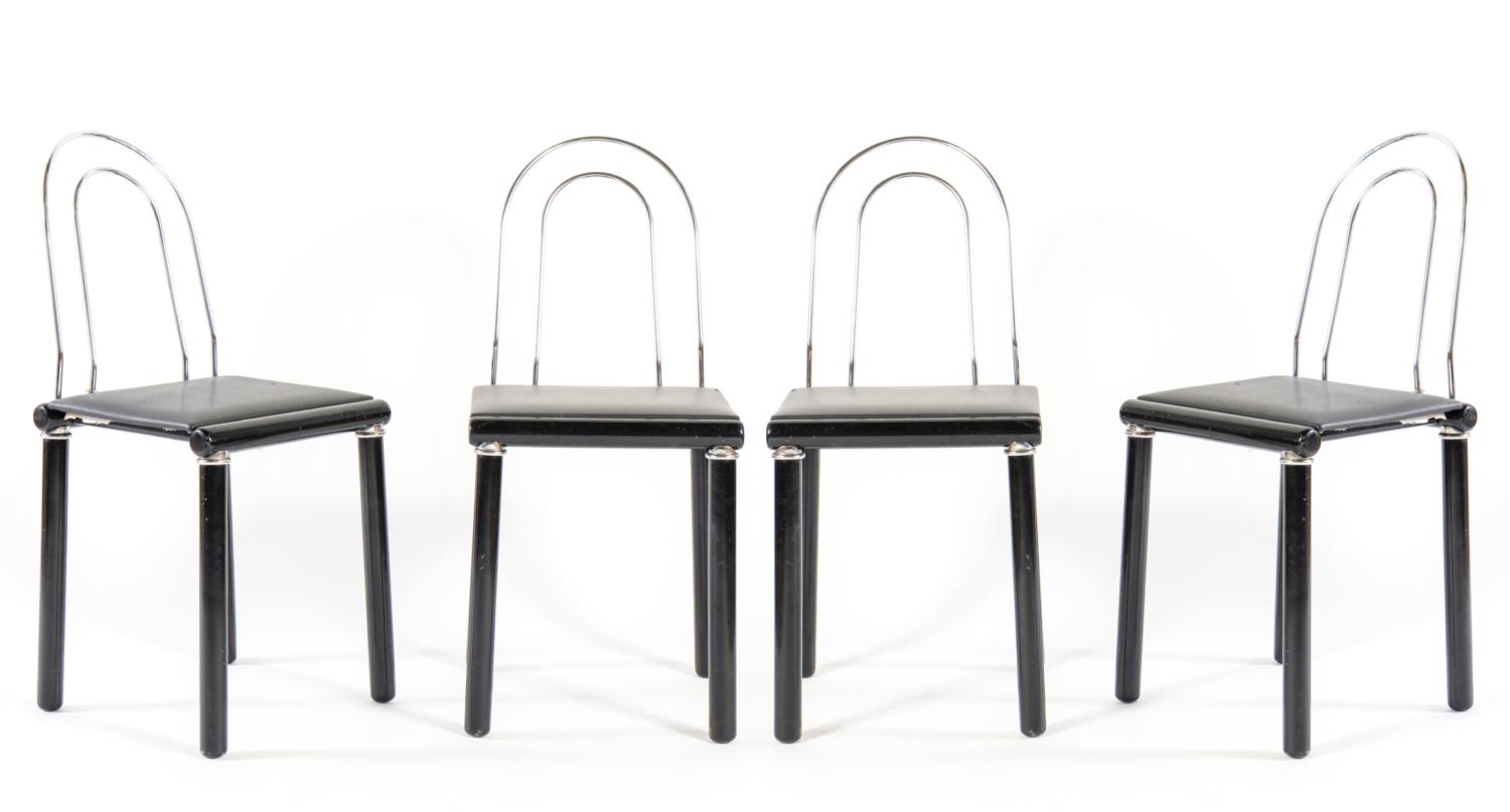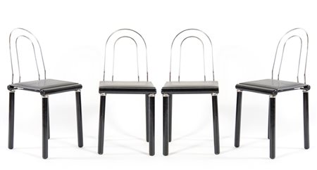 Gruppo di quattro sedie in legno laccato nero, Italia, fine del XX secolo.