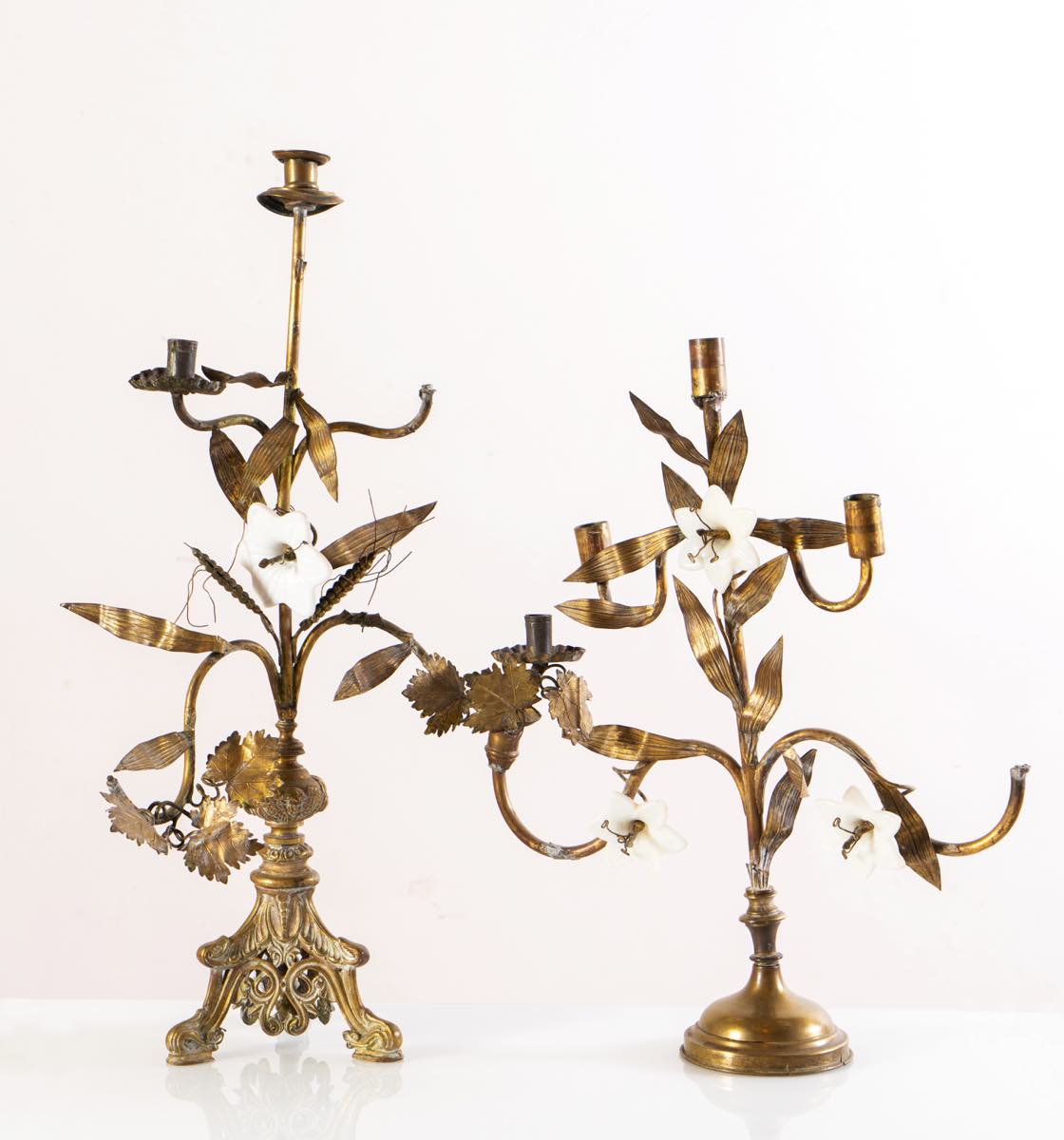 Decorati da fiori in vetro opalino bianco, H max cm 64 (usure – mancanze – rotture – restauri)