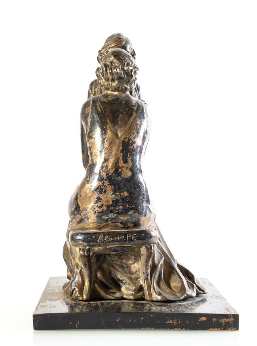 In terracotta galvanizzata in rame argentato, reca al retro iscrizione incisa “floris PF”, montata su base in legno ebanizzato, H tot cm 36x25x23 (usure alla patina)